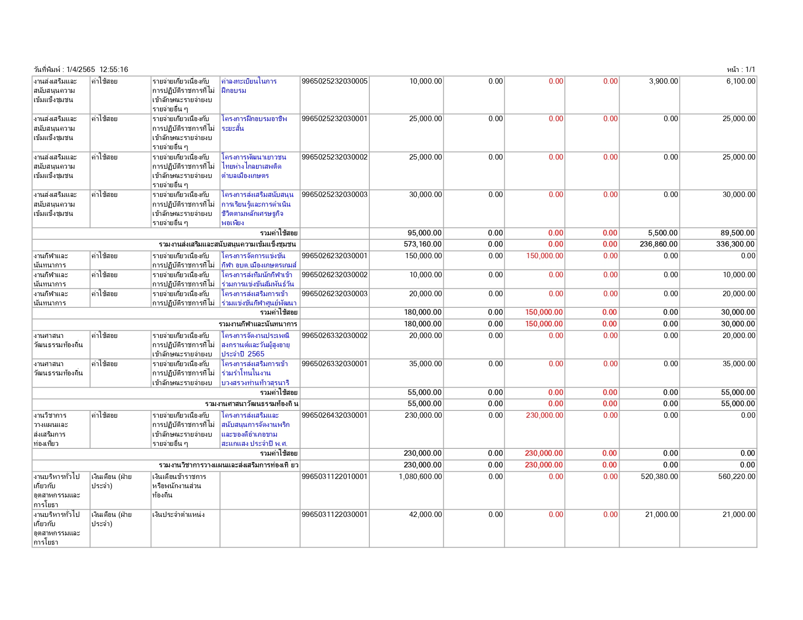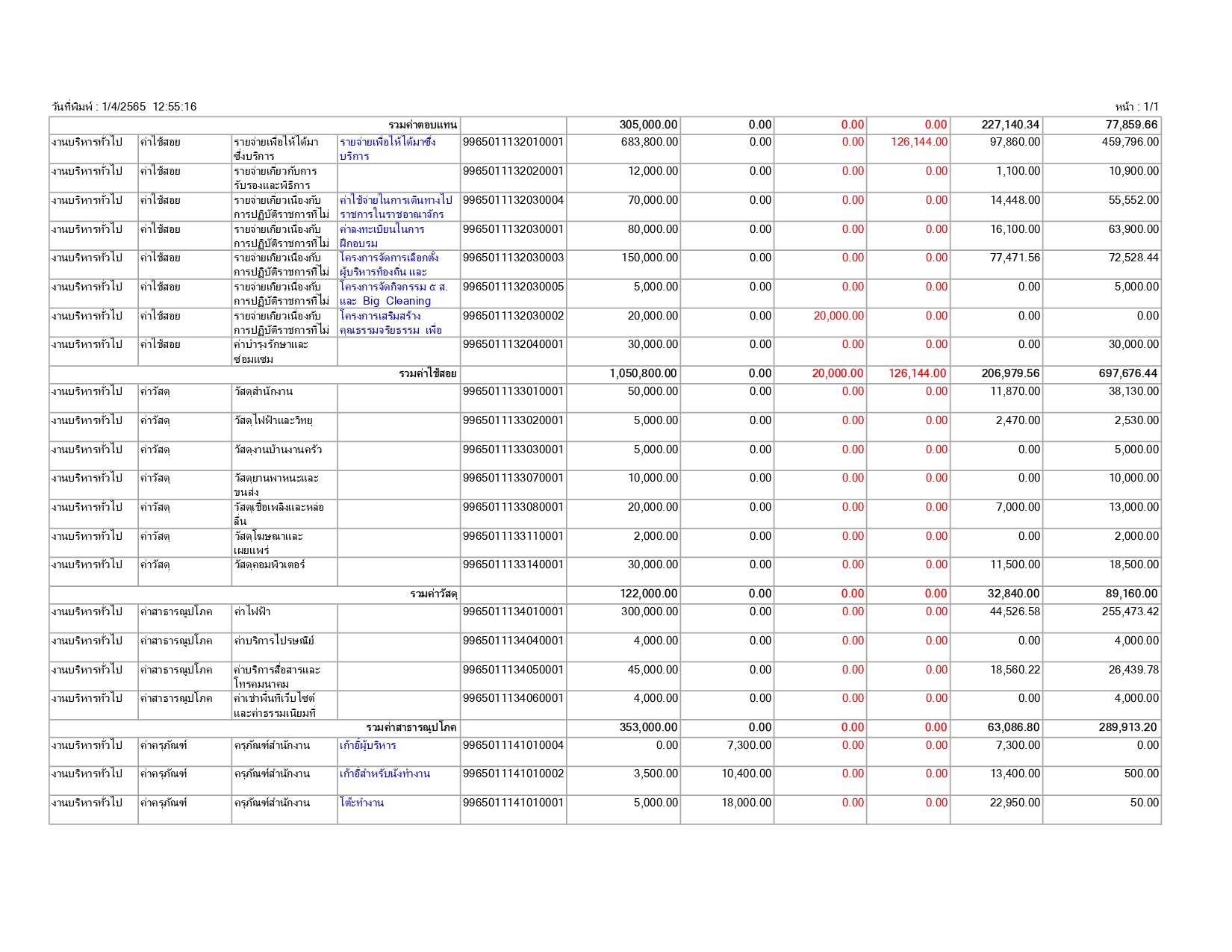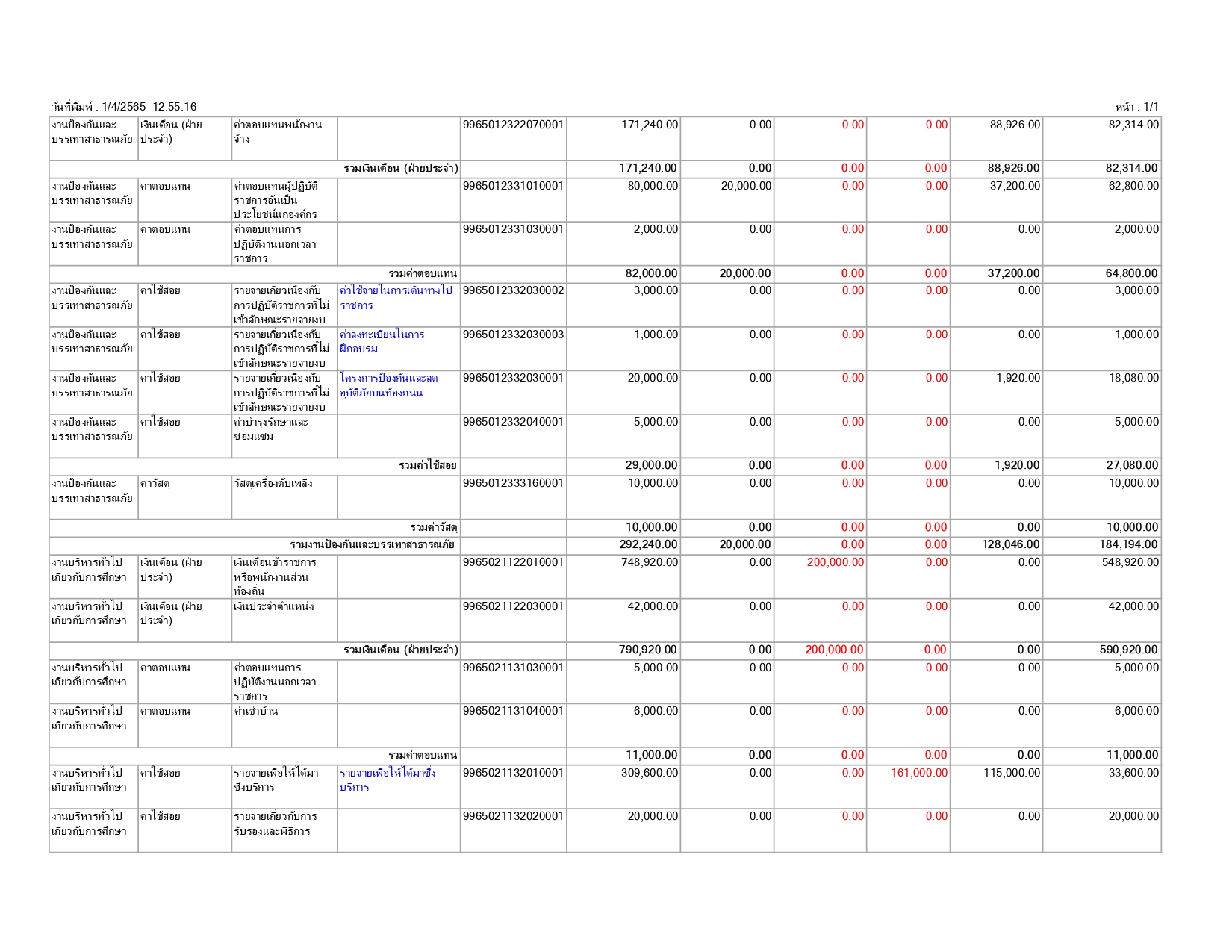 รายงานผลการดำเนินงานตามแผนการใช้จ่ายงบประมาณประจำปีงบประมาณ 2565 รอบ 6 เดือน