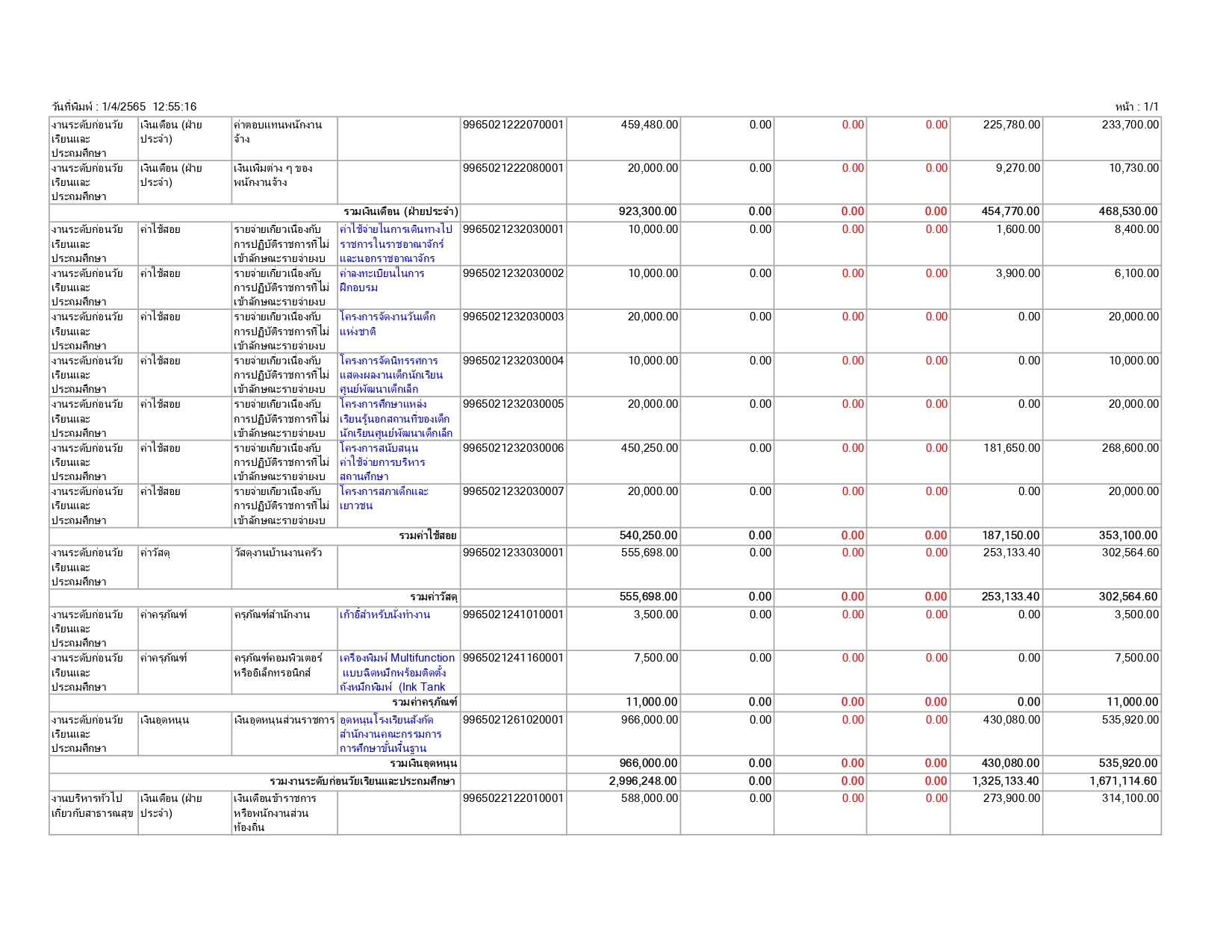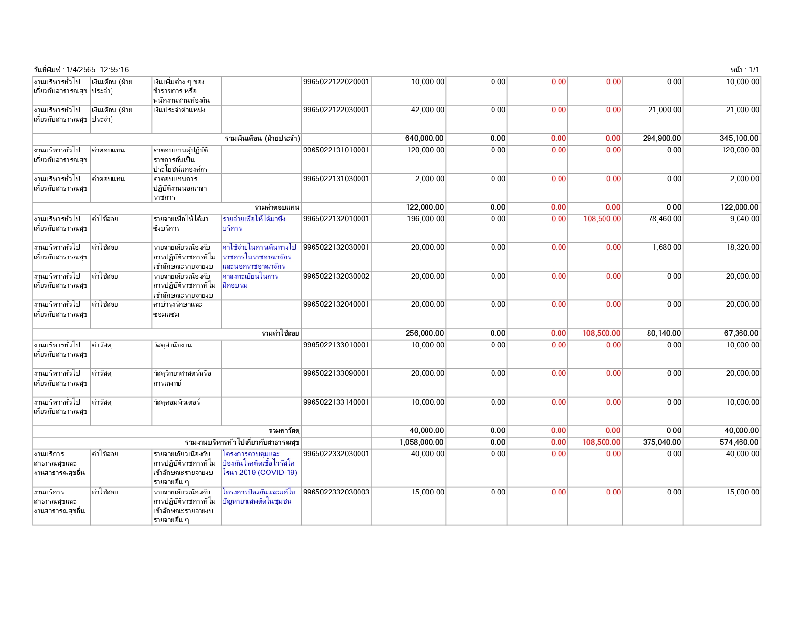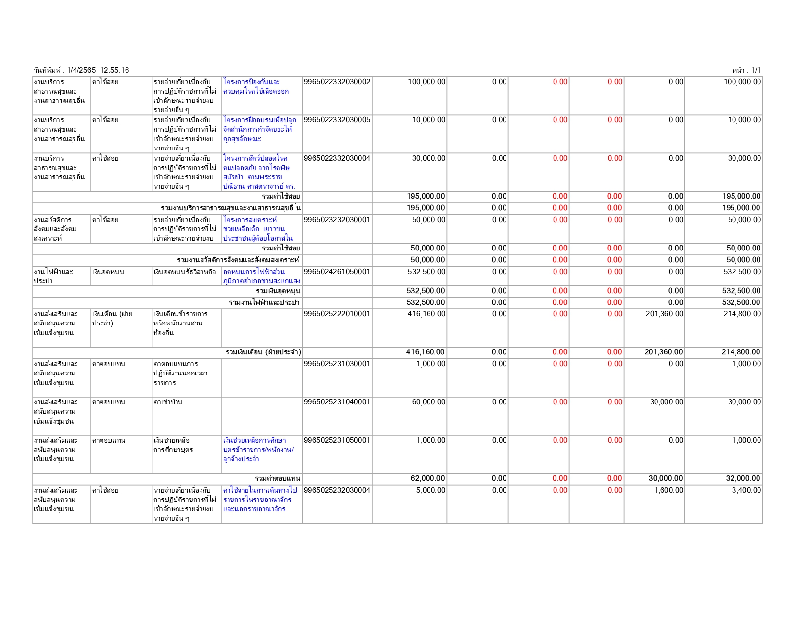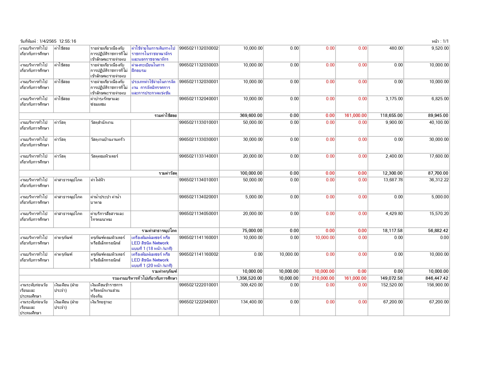 รายงานผลการดำเนินงานตามแผนการใช้จ่ายงบประมาณประจำปีงบประมาณ 2565 รอบ 6 เดือน