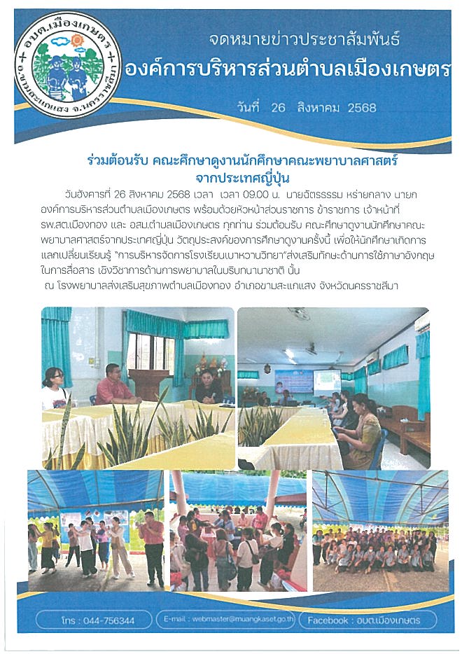 ร่วมต้อนรับคณะศึกษาดูงานนักศึกษาคณะพยาบาลศาสตร์จากประเทศญี่ปุ่น