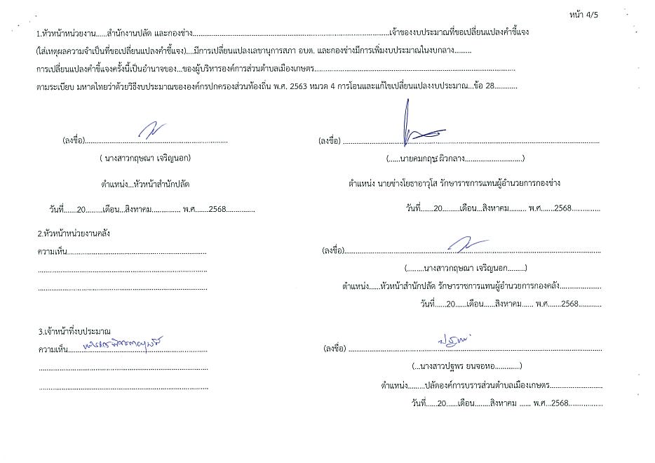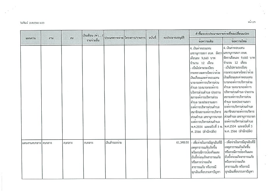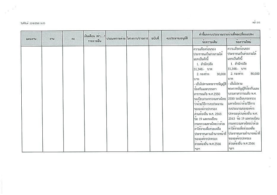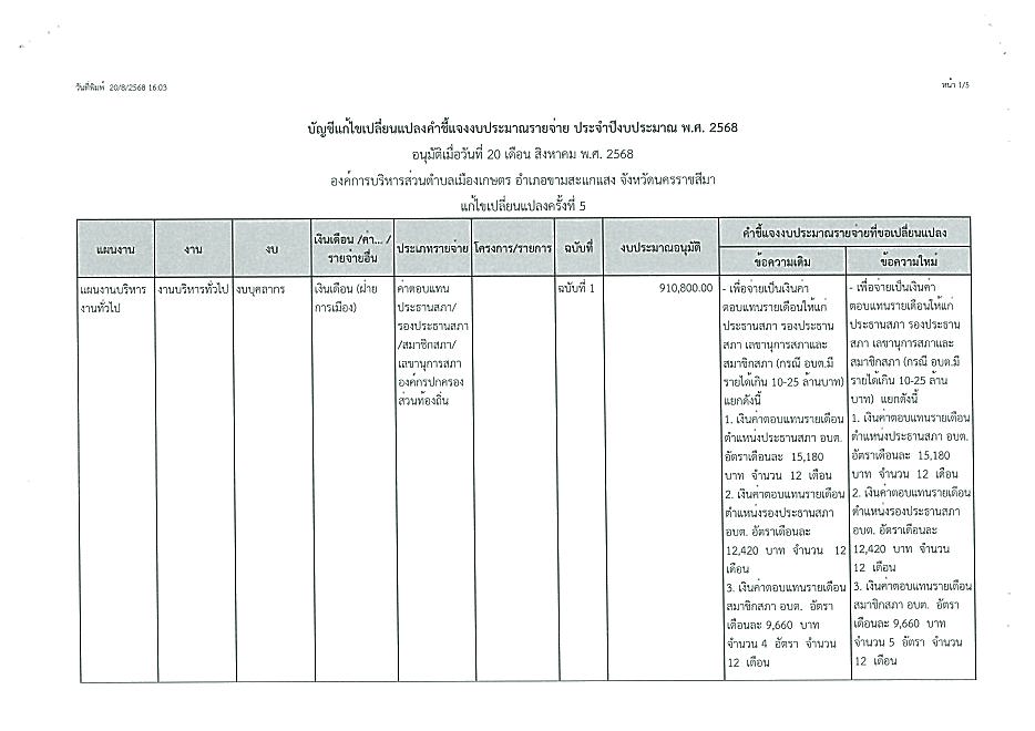การแก้ไขเปลี่ยนแปลงคำชี้แจงงบประมาณรายจ่าย ปี 2568 ครี้งที่ 5