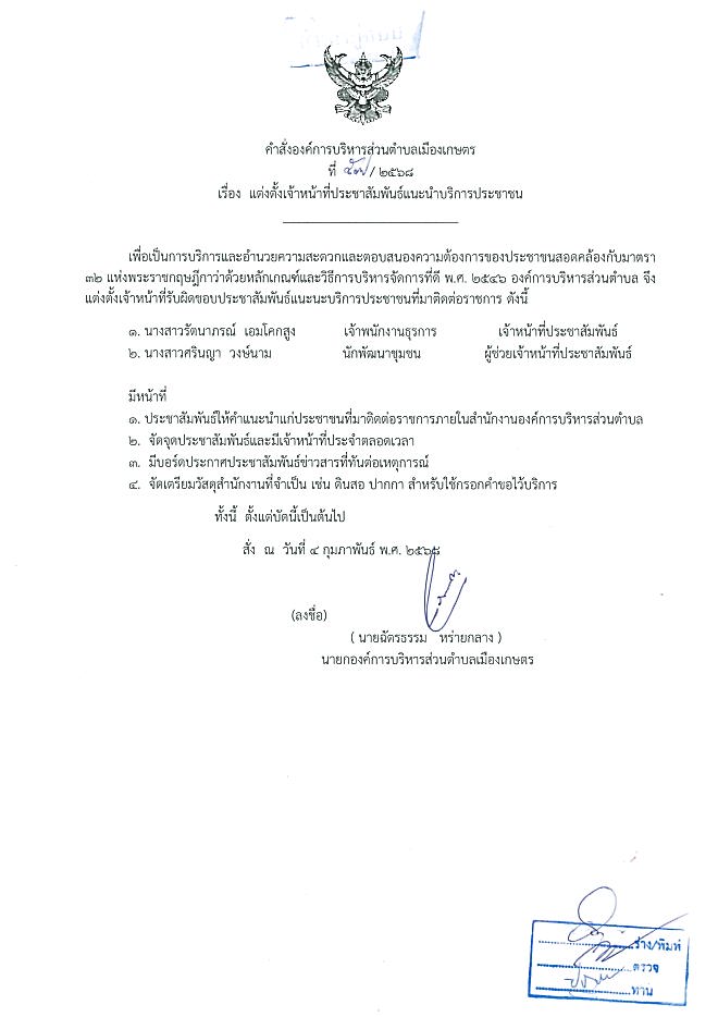 แต่งตั้งเจ้าหน้าที่ประชาสัมพันธ์แนะนำบริการประชาชน