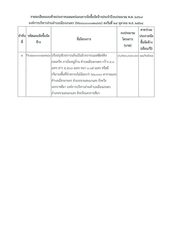ประกาศเผยแพร่การจัดซื้อจัดจ้าง ประจำปีงบประมาณ พ.ศ.2569