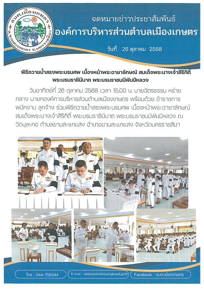 สงวนลิขสิทธิ์ 2568 โดย องค์การบริหารส่วนตำบลเมืองเกษตร