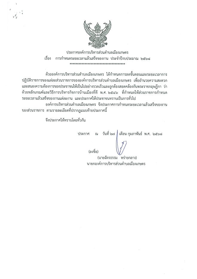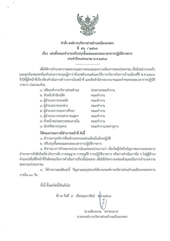แต่งตั้งคณะทำงานปรับปรุงขั้นตอนและระยะเวลาการปฏิบัติราชการ ประจำปีงบประมาณ พ.ศ.2568