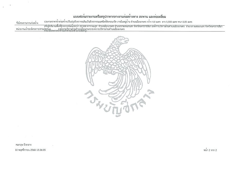 ประกวดราคาจ้างก่อสร้างปรับปรุงผิวจราจรเดิมเป็นผิวจราจรแอสฟัลท์ติกคอนกรีต ภายในหมู่บ้าน ตำบลเมืองเกษตร กว้าง 4.0 เมตร ยาว 5,500 เมตร หรือมีปริมาณพื้นที่ผิวจราจรไม่น้อยกว่า 22,000 ตารางเมตร ด้วยวิธีประกวดราคาอิเล็กทรอนิกส์ (e-bidding)