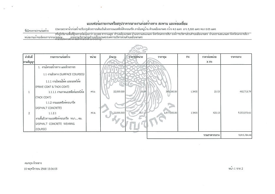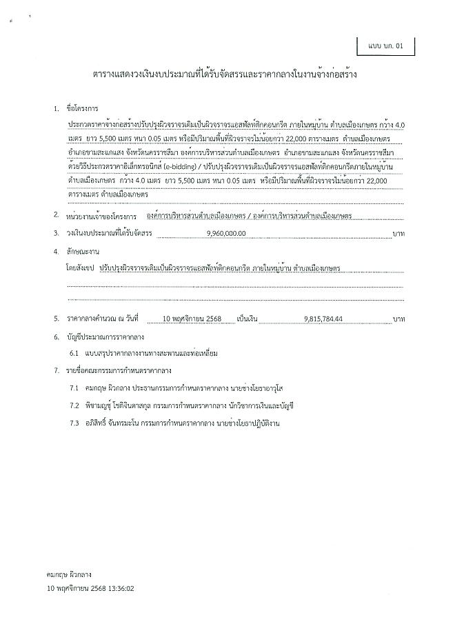 ประกวดราคาจ้างก่อสร้างปรับปรุงผิวจราจรเดิมเป็นผิวจราจรแอสฟัลท์ติกคอนกรีต ภายในหมู่บ้าน ตำบลเมืองเกษตร กว้าง 4.0 เมตร ยาว 5,500 เมตร หรือมีปริมาณพื้นที่ผิวจราจรไม่น้อยกว่า 22,000 ตารางเมตร ด้วยวิธีประกวดราคาอิเล็กทรอนิกส์ (e-bidding)