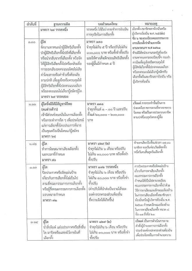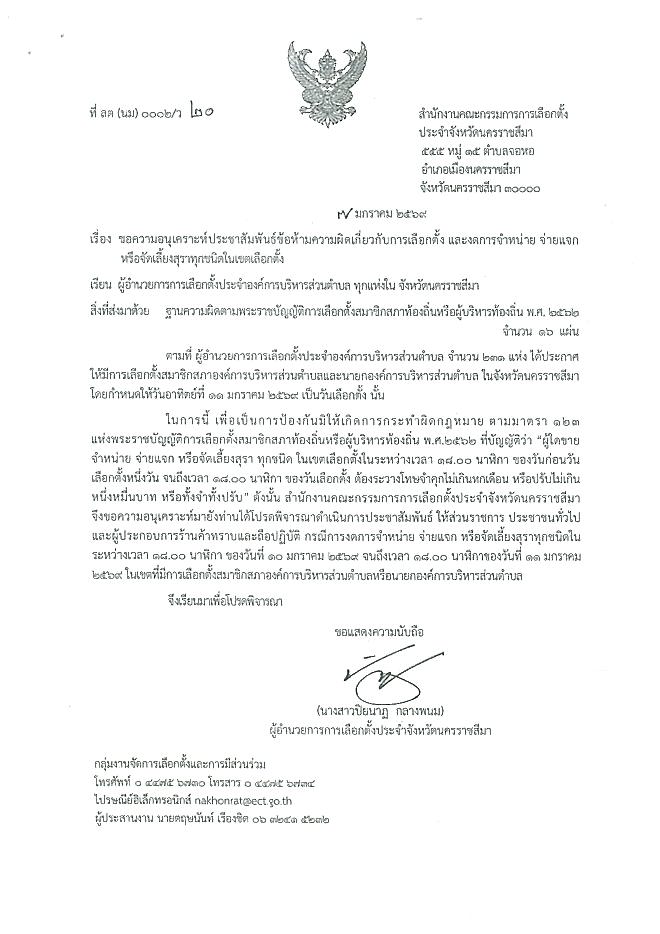 ขอความอนุเคราะห์ประชาสัมพันธ์ข้อห้ามความผิดเกี่ยวกับการเลือกตั้ง และงดจำหน่าย จ่ายแจกหรือจัดเลี้ยงสุราทุกชนิดในเขตเลือกตั้ง