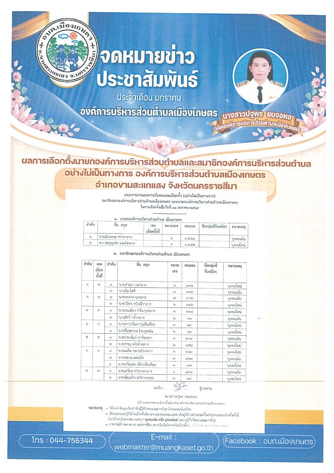 แบบรายงานผลการับคะแนนเลือกตั้ง (อย่างไม่เป็นทางการ) อบต.เมืองเกษตร