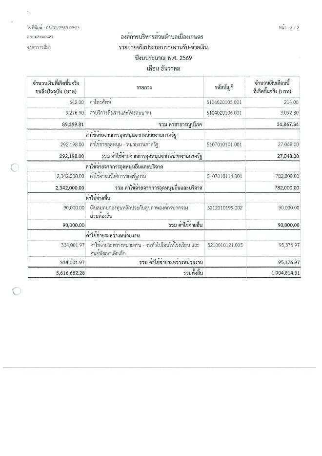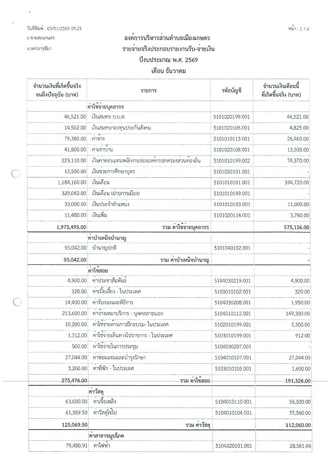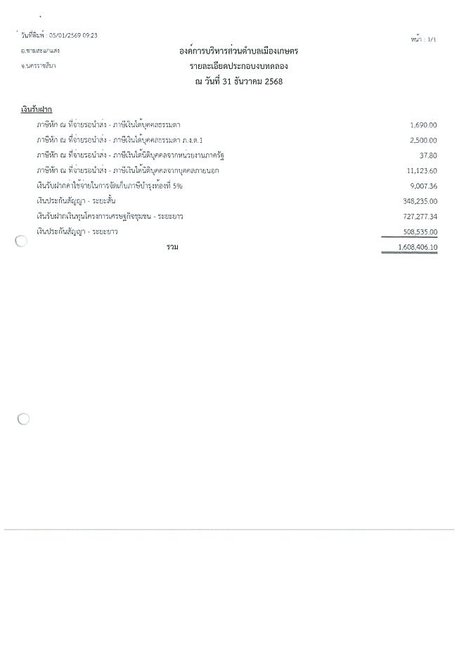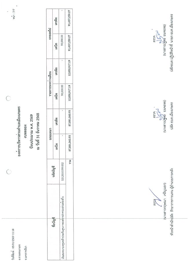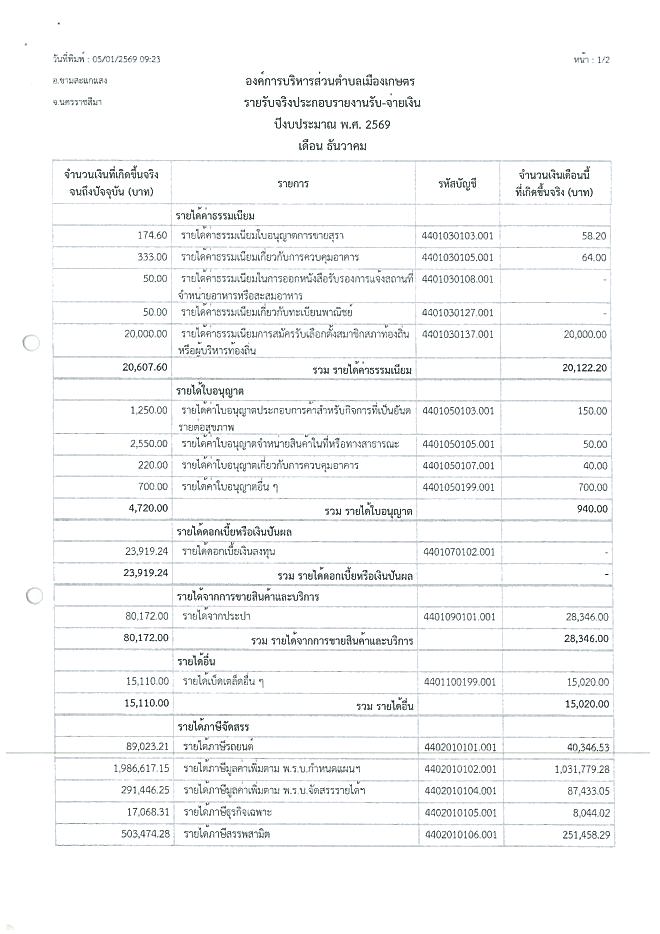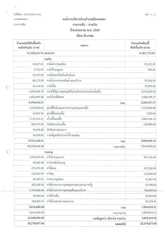 รายงานงบการเงินประจำเดือน ธันวาคม 2568