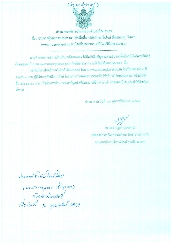 ประกาศผู้ชนะเสนอราคา เช่าพื้นที่การให้บริการเว็บไซด์ (โดเมนเนม)