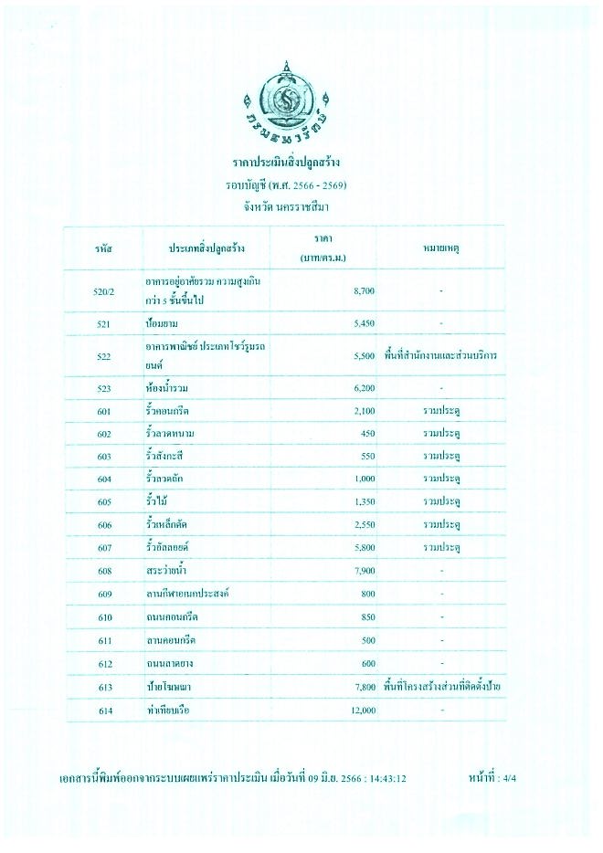 ประกาศบัญชีกำหนดราคาประเมินทุนทรัพย์ที่ดินและบัญชีกำหนดราคาประเมินทุนทรัพย์โรงเรือนสิ่งปลูกสร้าง จากเว็บไซต์ของกรมธนารักษ์เพื่อใช้สำหรับคำนวณภาษีที่ดินและสิ่งปลูกสร้างประจำปี พ.ศ. 2569