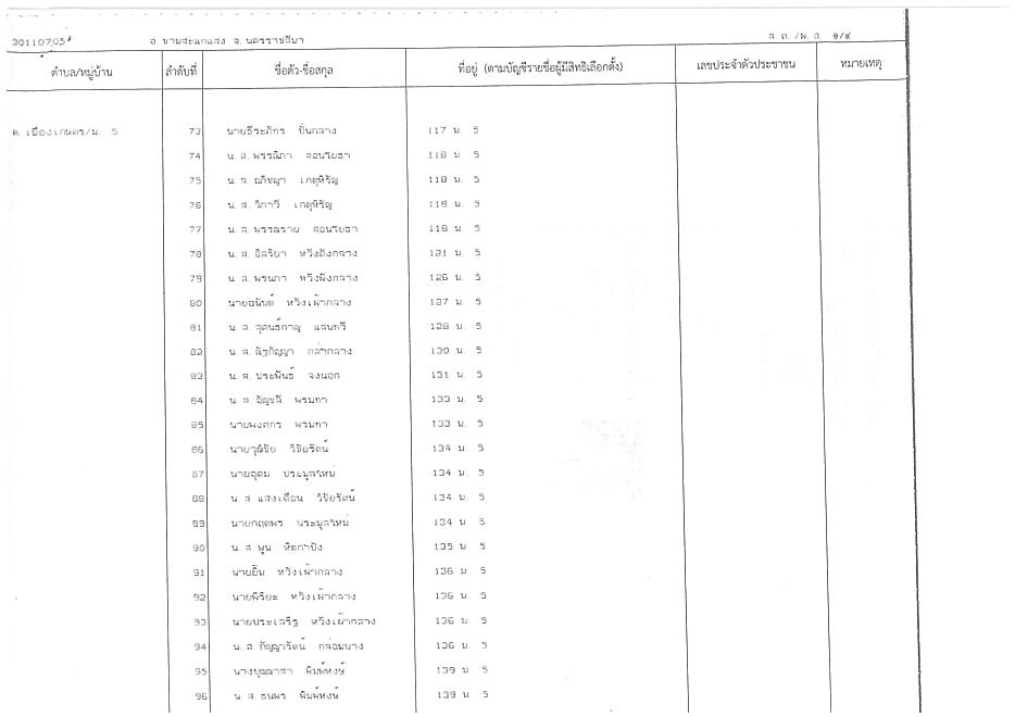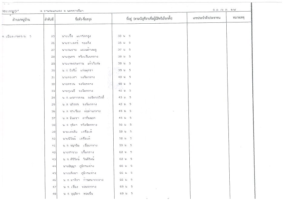 ประกาศบัญชีรายชื่อผู้มีสิทธิเลือกตั้งที่ไม่ไปใช้สิทธิเลือกตั้งและมิได้แจ้งเหตุที่ไม่อาจไปใช้สิทธิเลือกตั้งหรือแจ้งเหตุที่ไม่อาจไปใช้สิทธิเลือกตั้งแล้วแต่เหตุนั้นมิใช่เหตุอันสมควร เขตเลือกตั้งที่ 5