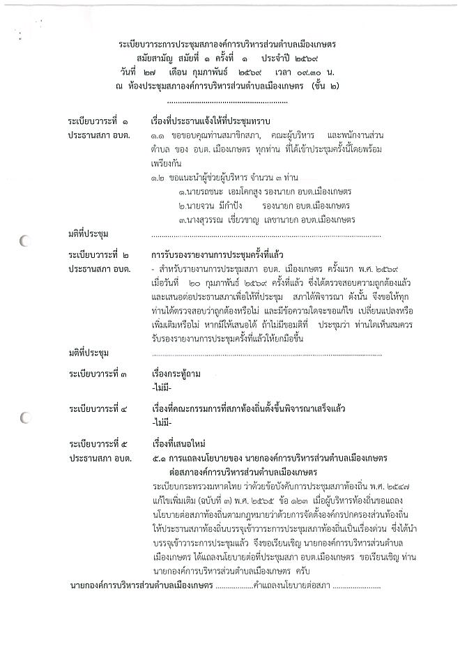 ขอเชิญเข้าร่วมการประชุมสภาองค์การบริหารส่วนตำบลเมืองเกาตร สมัยสามัญ สมัยที่ 1 ประจำปี 2569