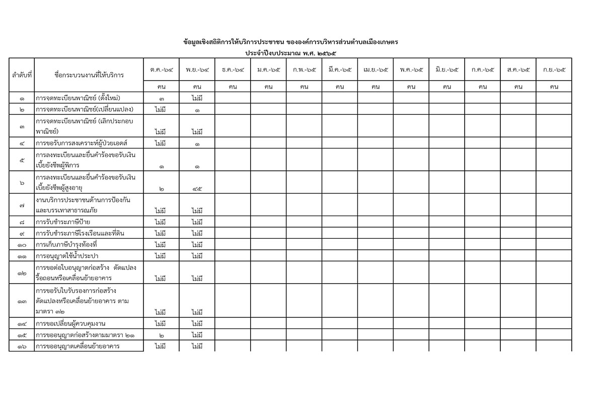 ข้อมูลเชิงสถิติการให้บริการประชาชนของ อบต.เมืองเกษตร ประจำเดือน พฤศจิกาย 2564