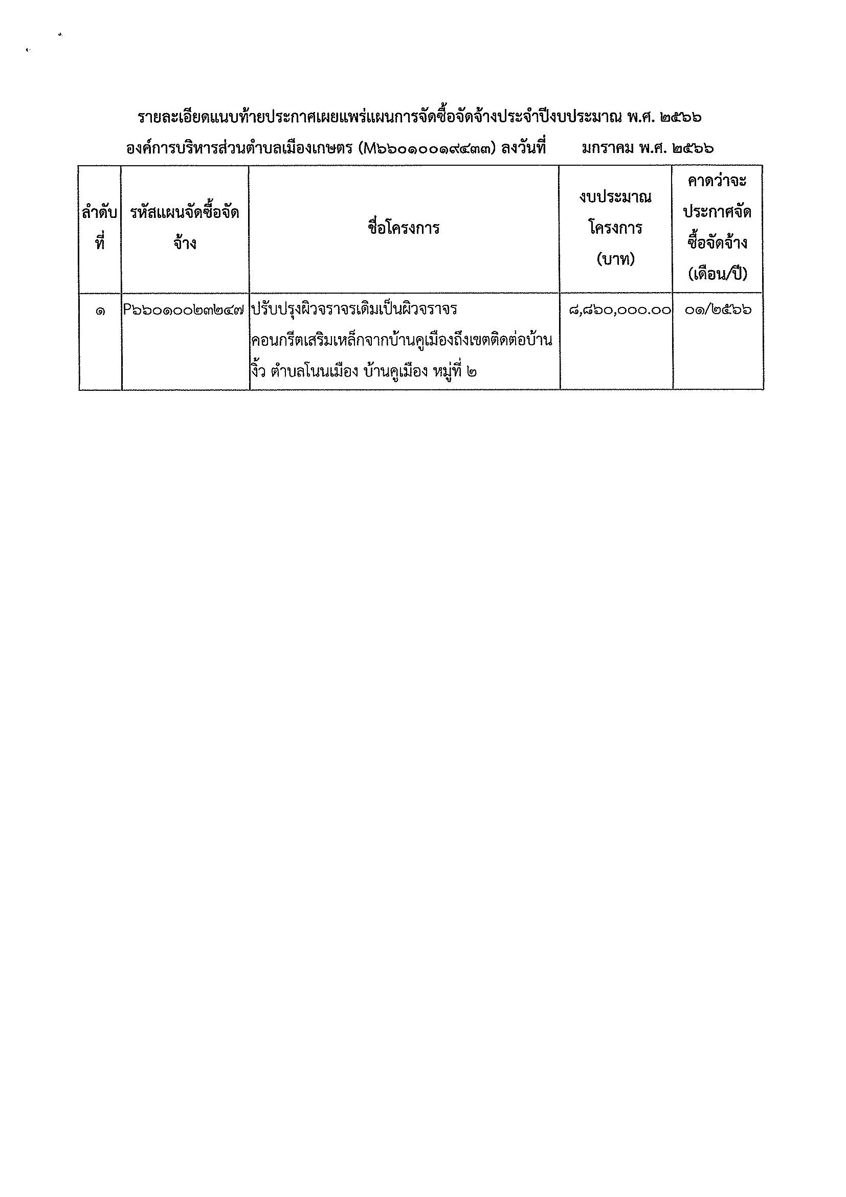 เผยแพร่แผนการจัดซื้อจัดจ้าง ประจำปีงบประมาณ 2566