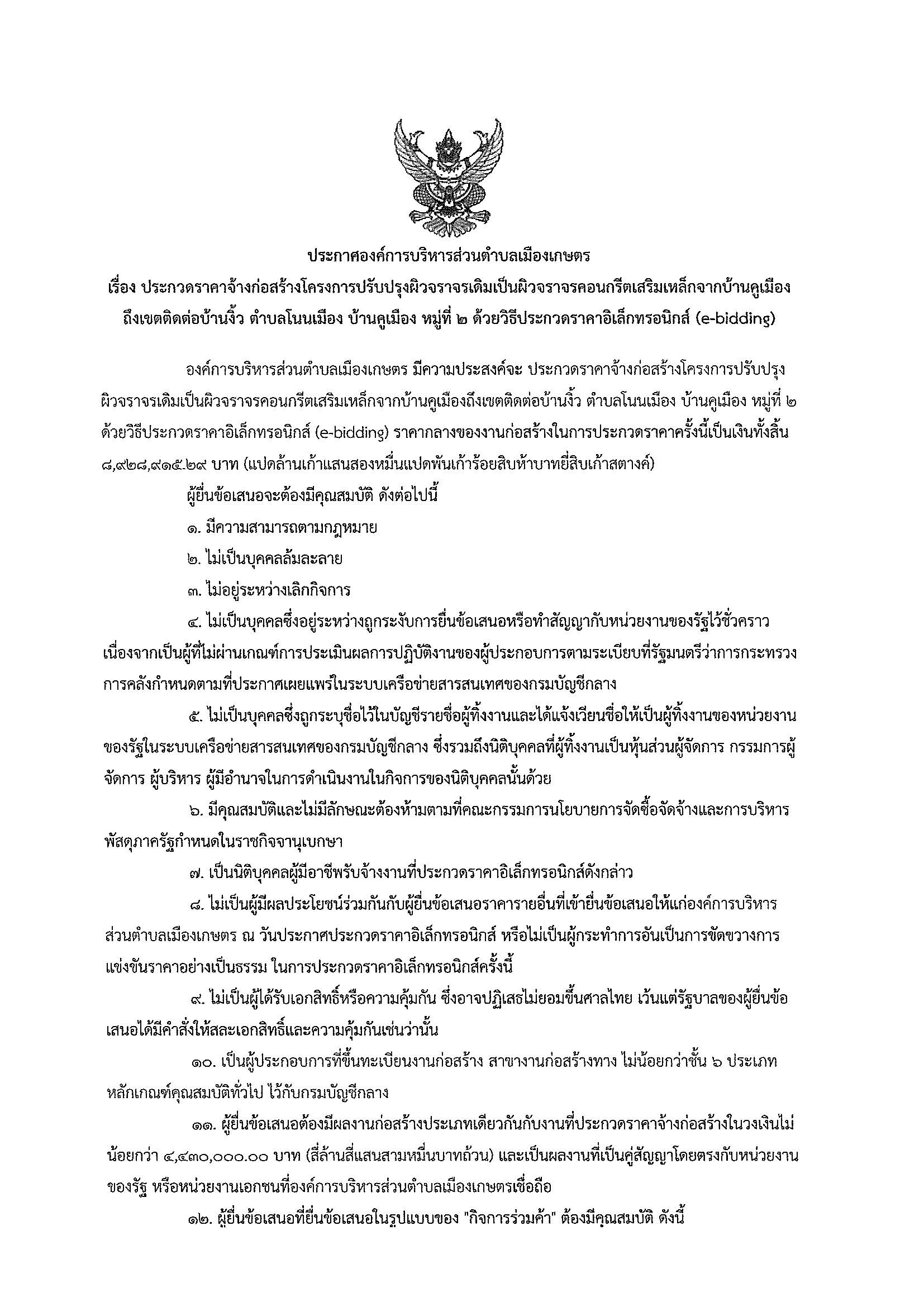 ประกวดราคาจ้างก่อสร้างโครงการปรับปรุงผิวจราจรเดิมเป็นผิวจราจรคอนกรีตเสริมเหล็ก
