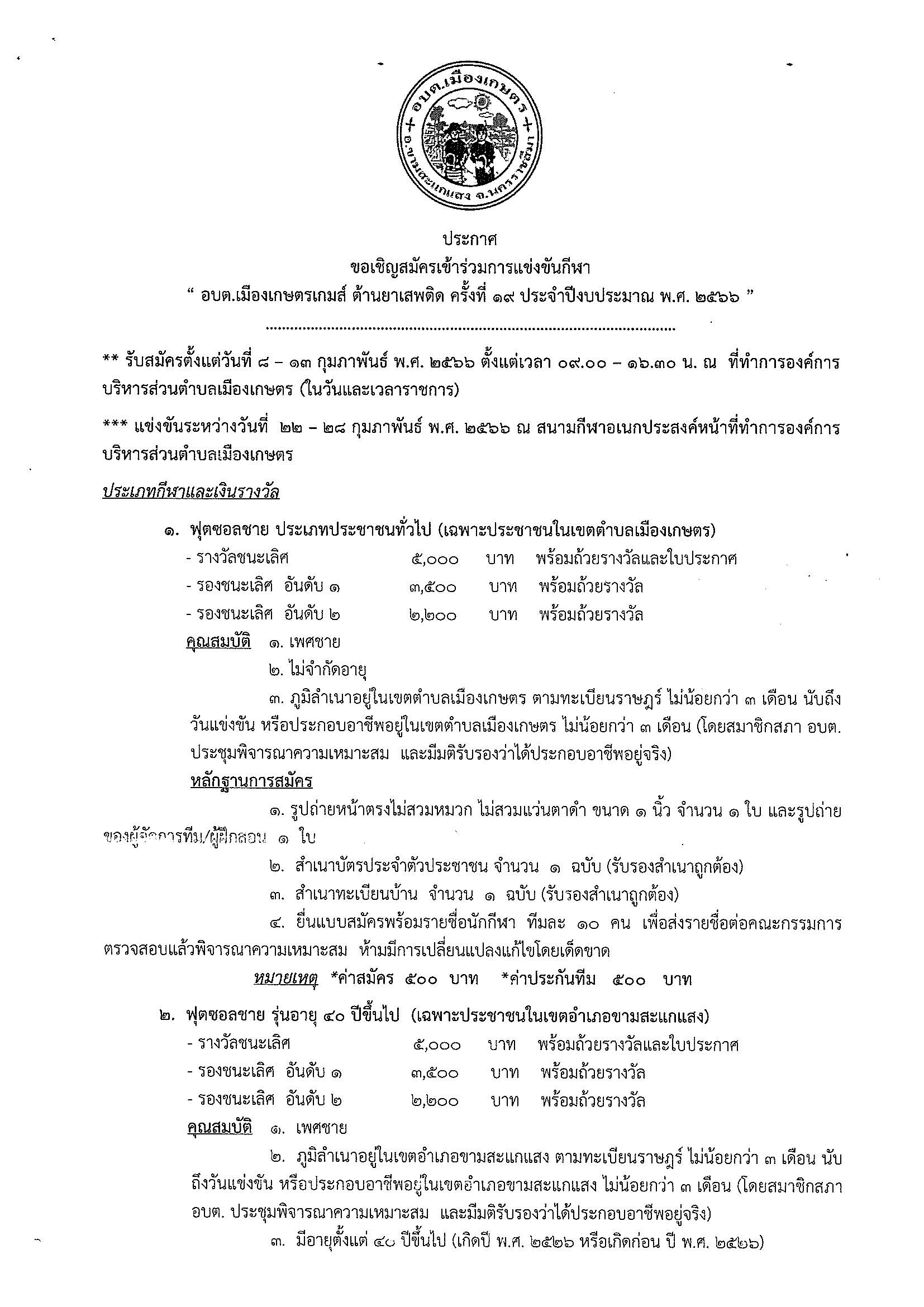 สมัครเข้าร่วมการแข่งขันกีฬา "อบต.เมืองเกษตรเกมส์ ต้านยาเสพติด ครั้งที่ ๑๙ "