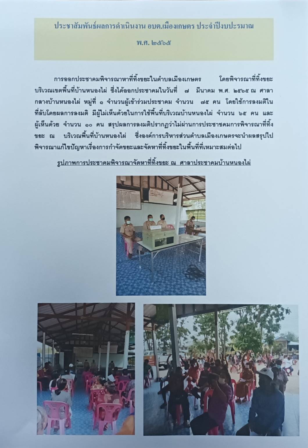 สรุปผลการจัดหาที่ทิ้งขยะประจำตำบลขององค์การบริหารส่วนตำบลเมืองเกษตร