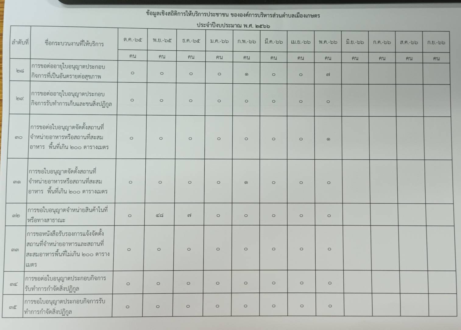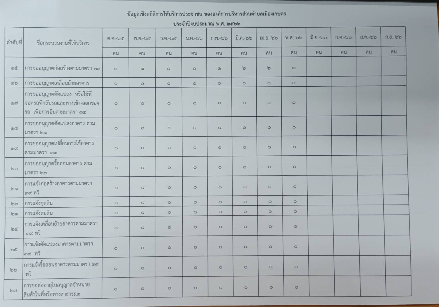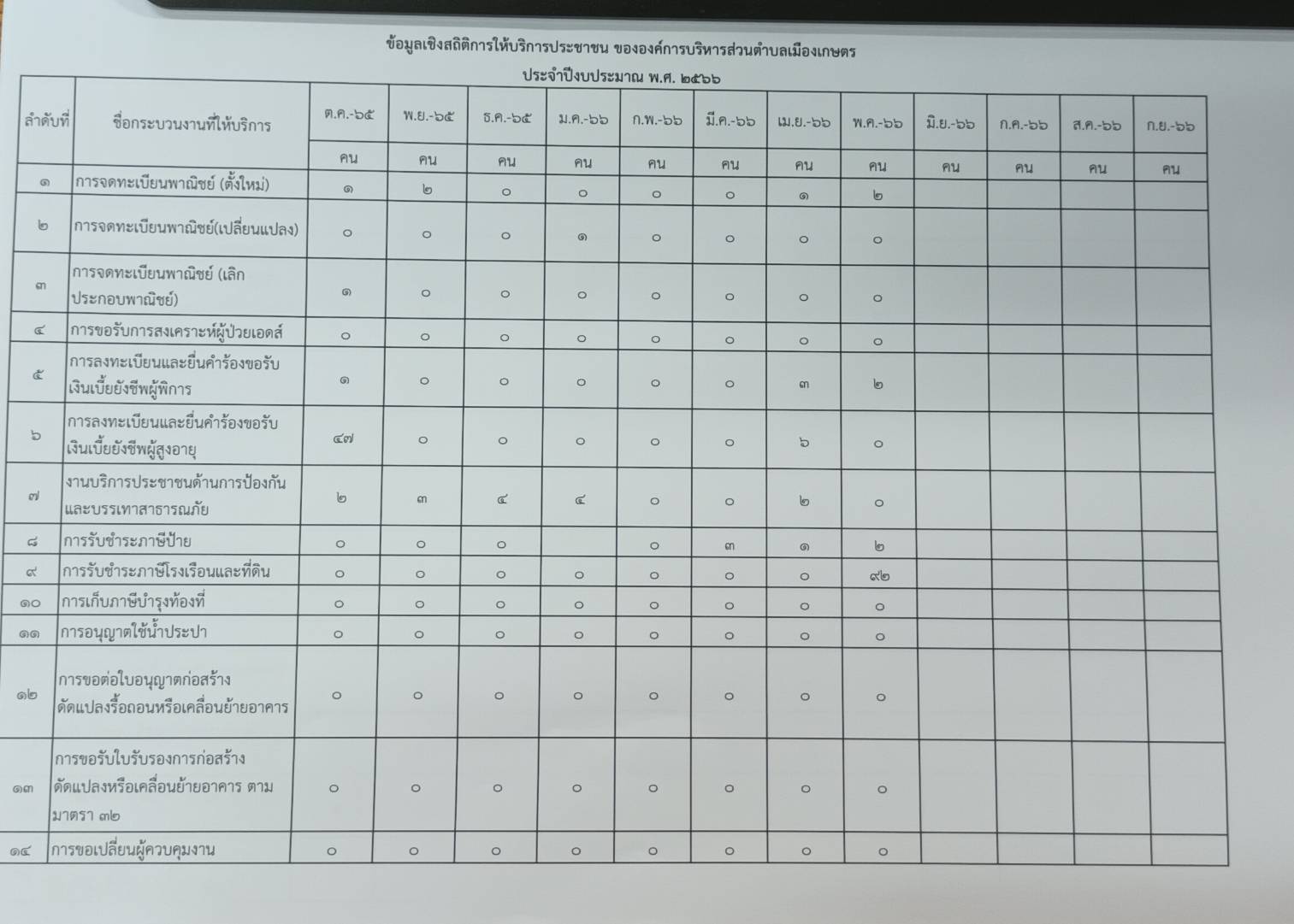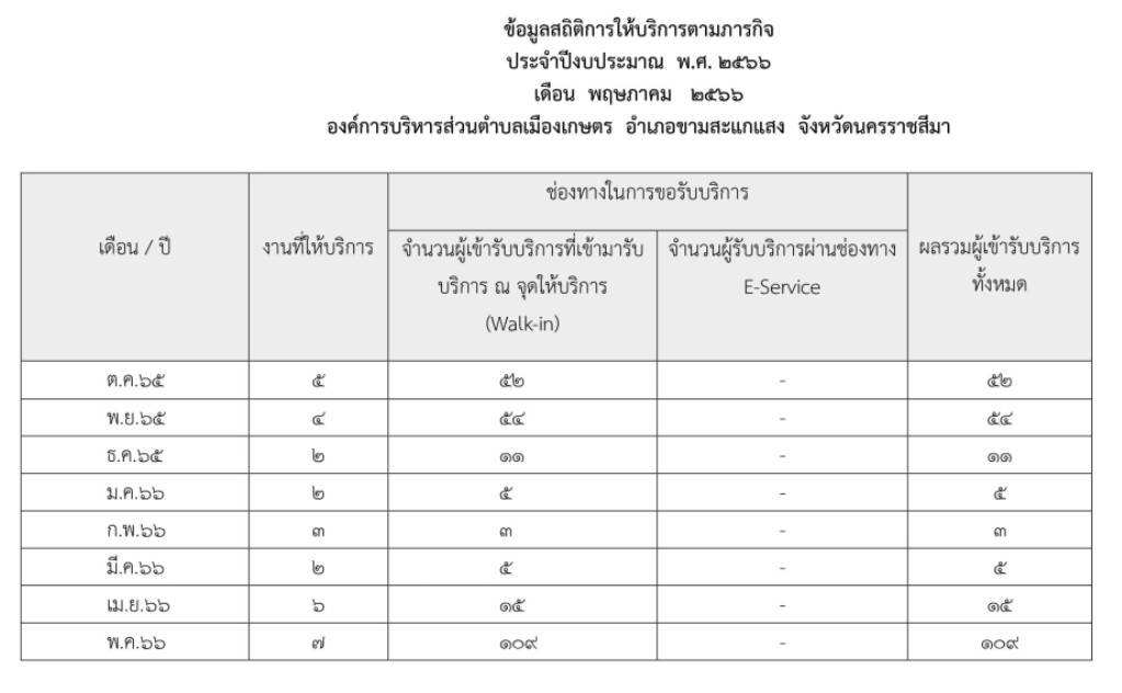 ข้อมูลเชิงสถิติการให้บริการประชาชนของ อบต.เมืองเกษตร ประจำเดือน พฤษภาคม 2566