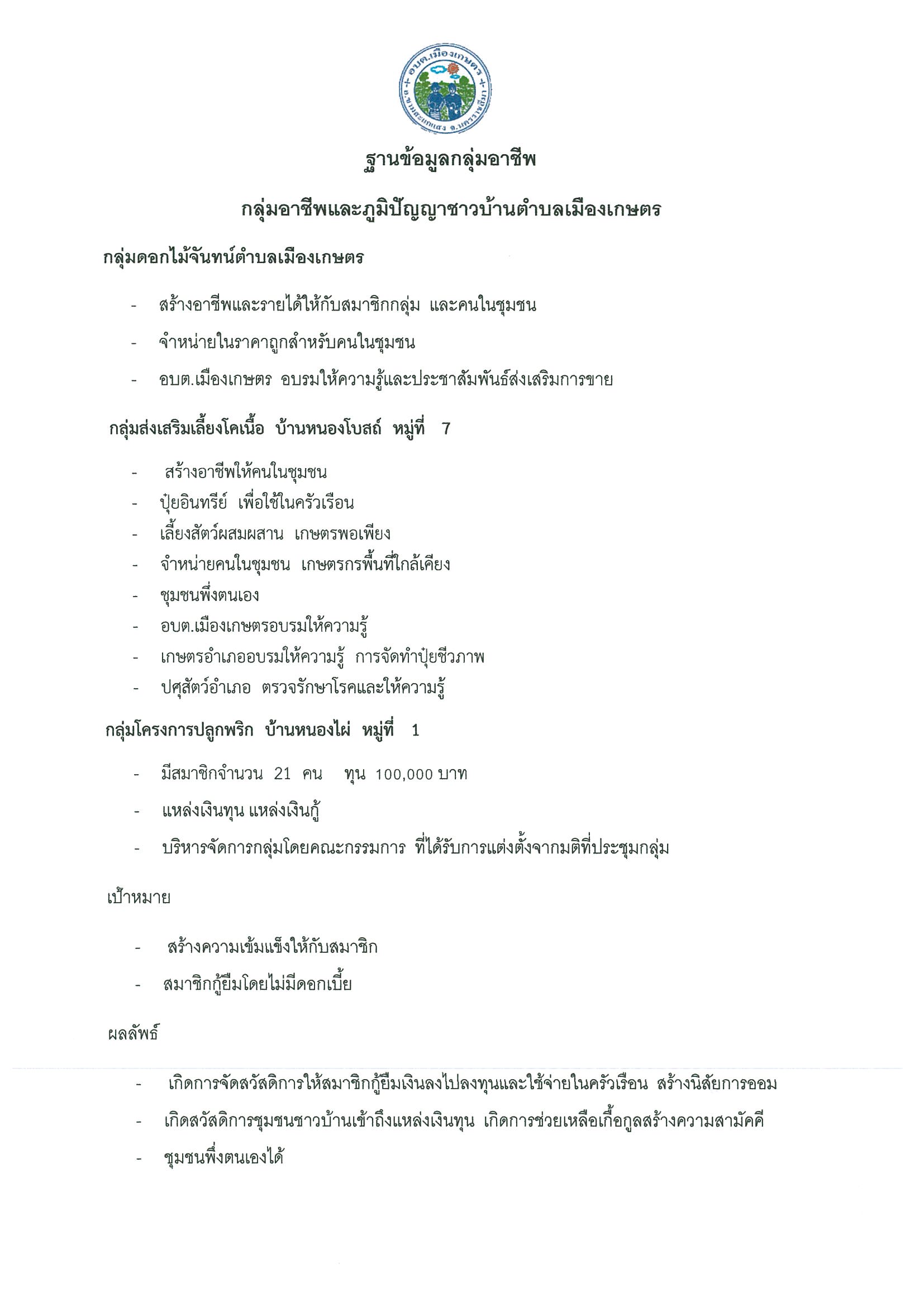กลุ่มอาชีพและภูมิปัญญาชาวบ้านตำบลเมืองเกษตร