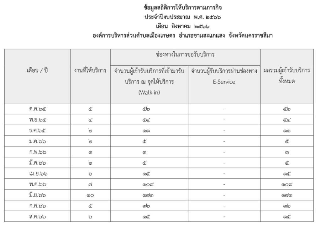 ข้อมูลเชิงสถิติการให้บริการประชาชนของ อบต.เมืองเกษตร ประจำเดือน สิงหาคม 2566