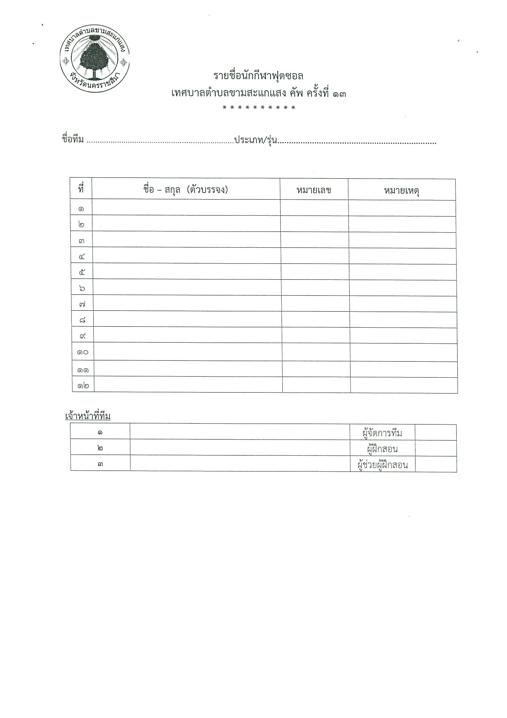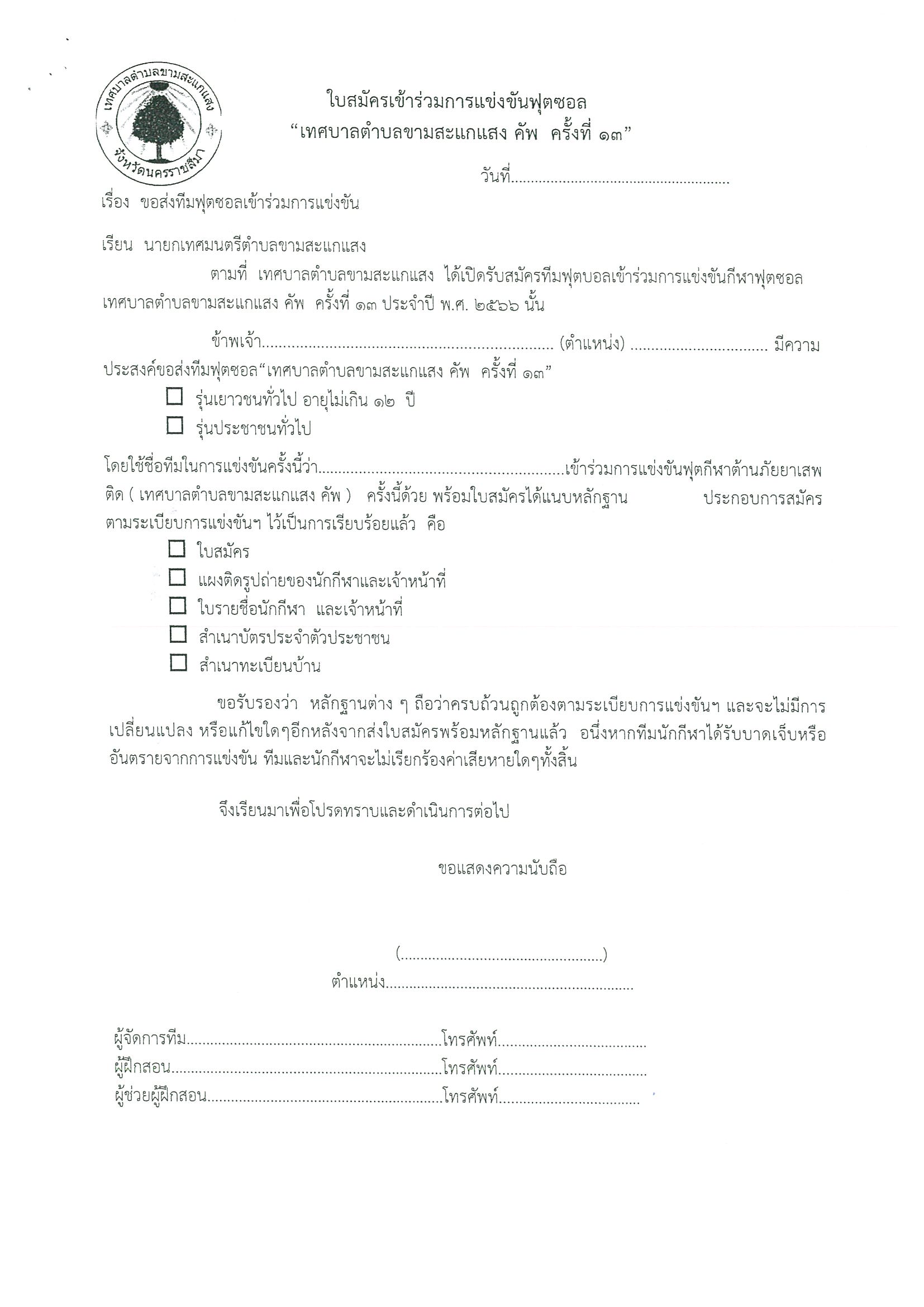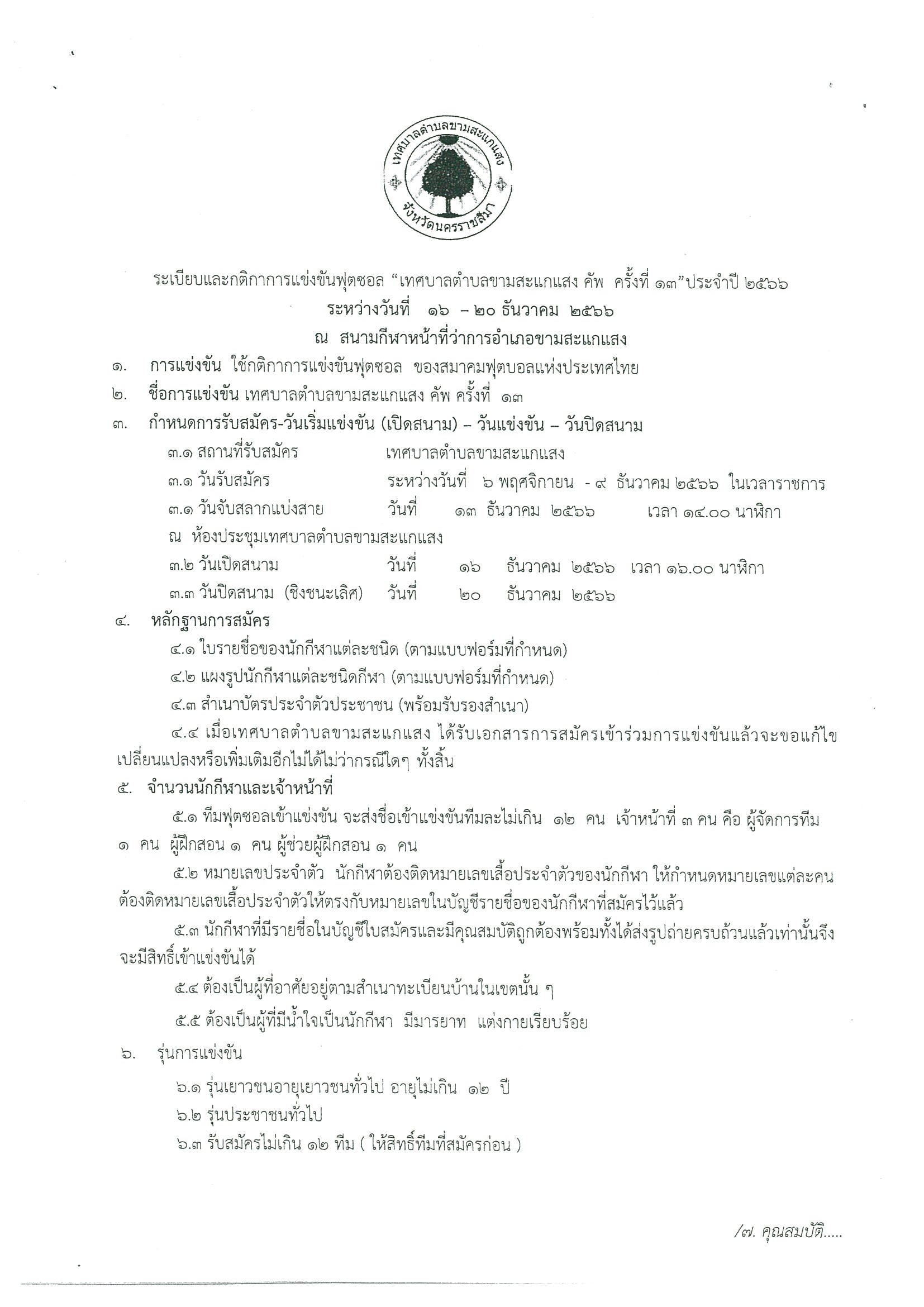 ประชาสัมพันธ์ การรับสมัครฟุตซอล เทศบาลตำบลขามสะแกแสง คัพ ครั้งที่ 13