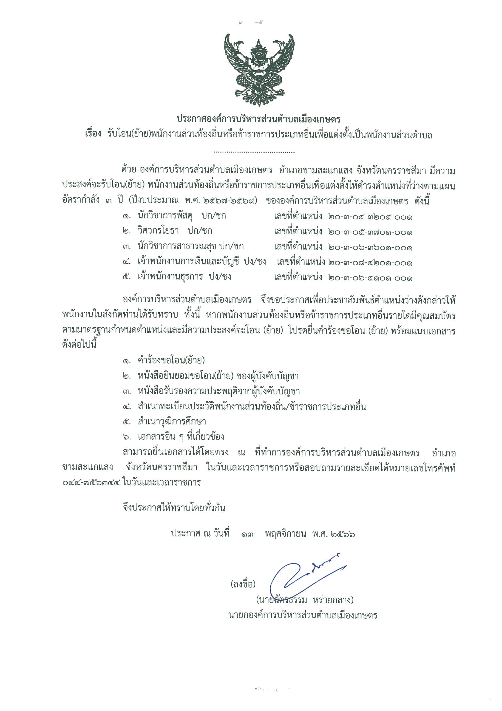 รับโอน(ย้าย)พนง.ส่วนท้องถิ่นหรือข้าราชการประเภทอื่นเพื่อแต่งตั้งเป็นพนง.ส่วนตำบล