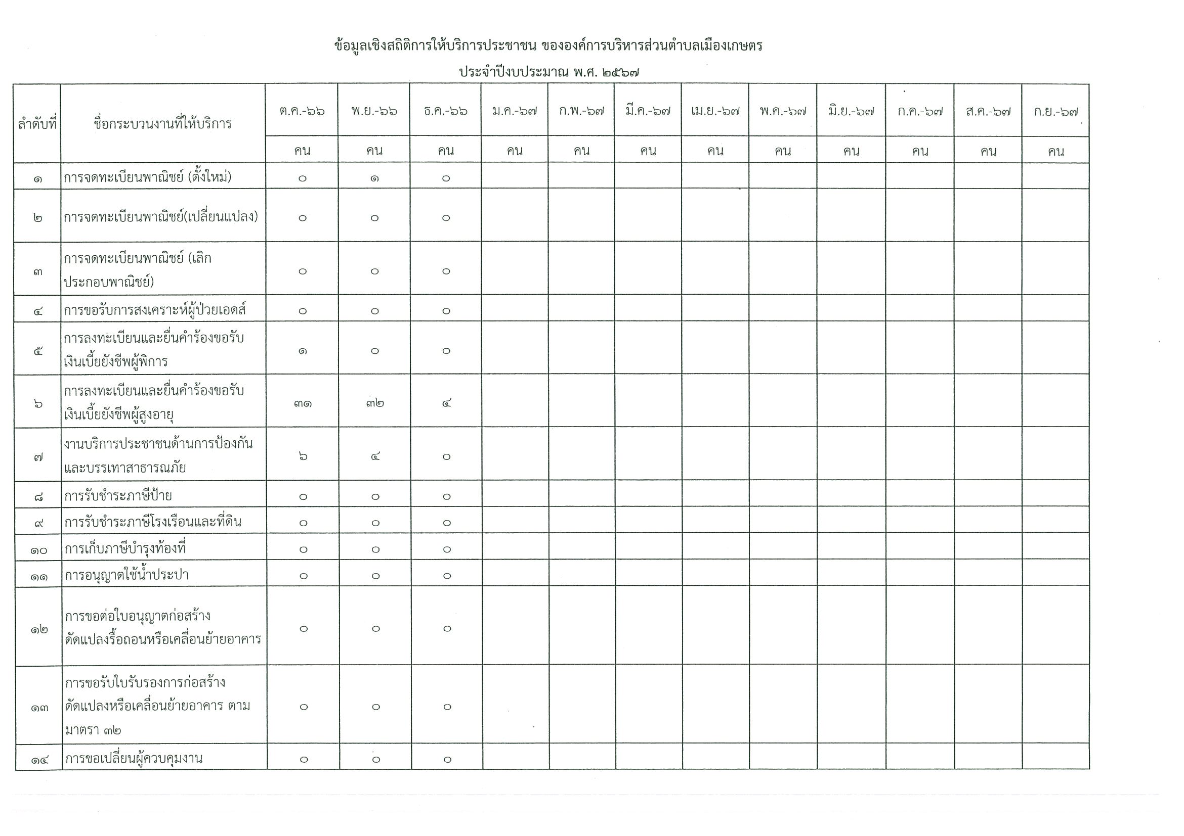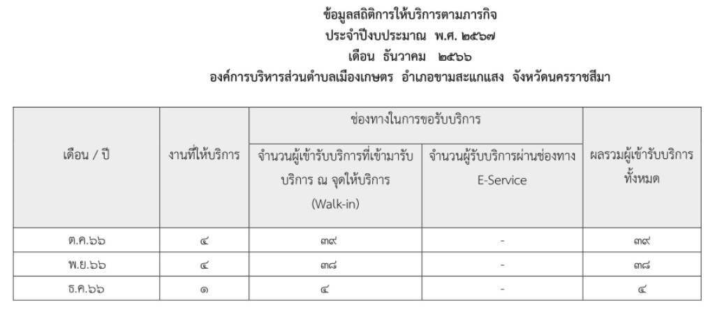ข้อมูลเชิงสถิติการให้บริการประชาชนของ อบต.เมืองเกษตร ประจำเดือน ธันวาคม 2566