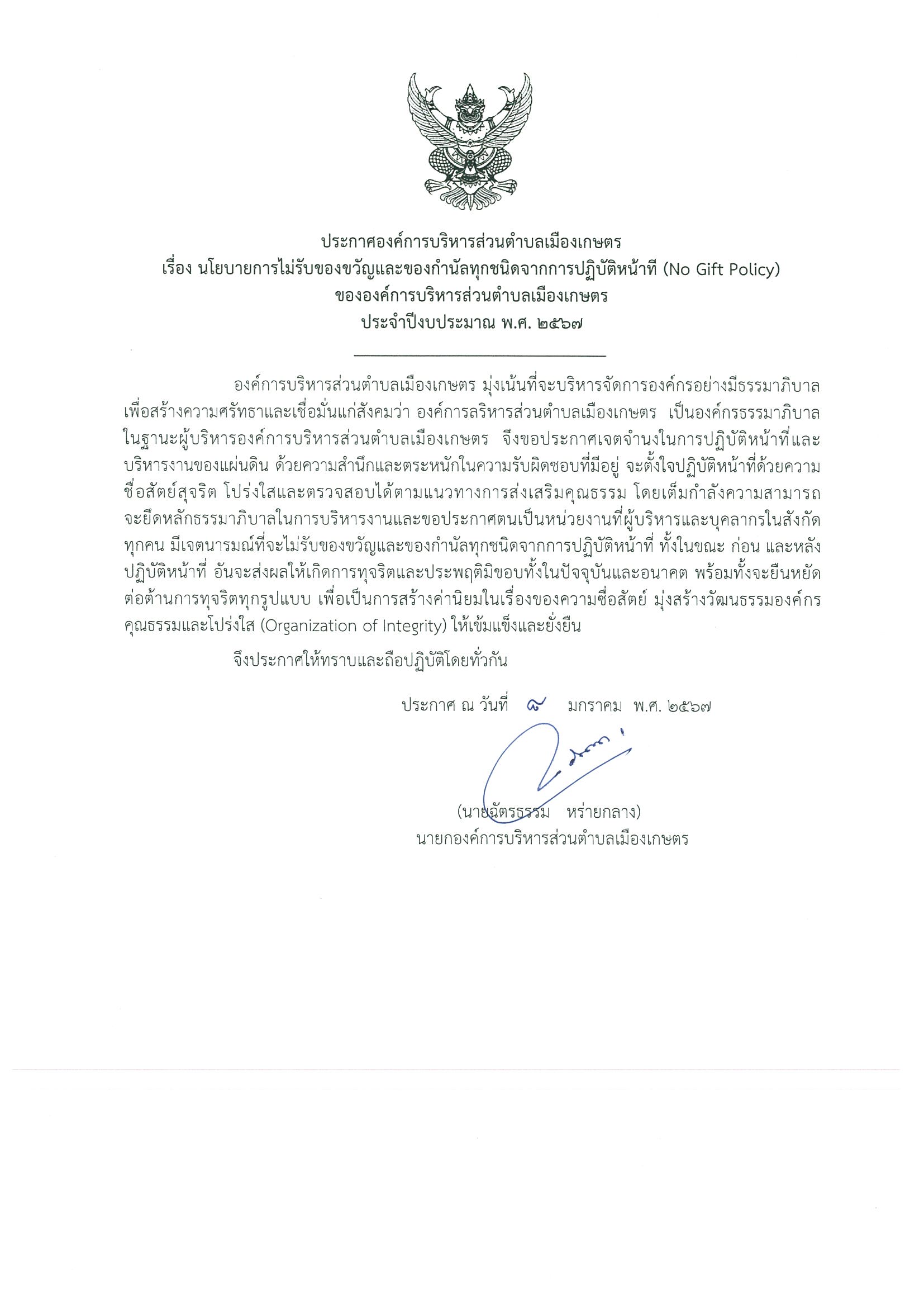 นโยบายการไม่รับของขวัญและของกำนัลทุกชนิดจากการปฏิบัติหน้าที่ (No Gift Policy)