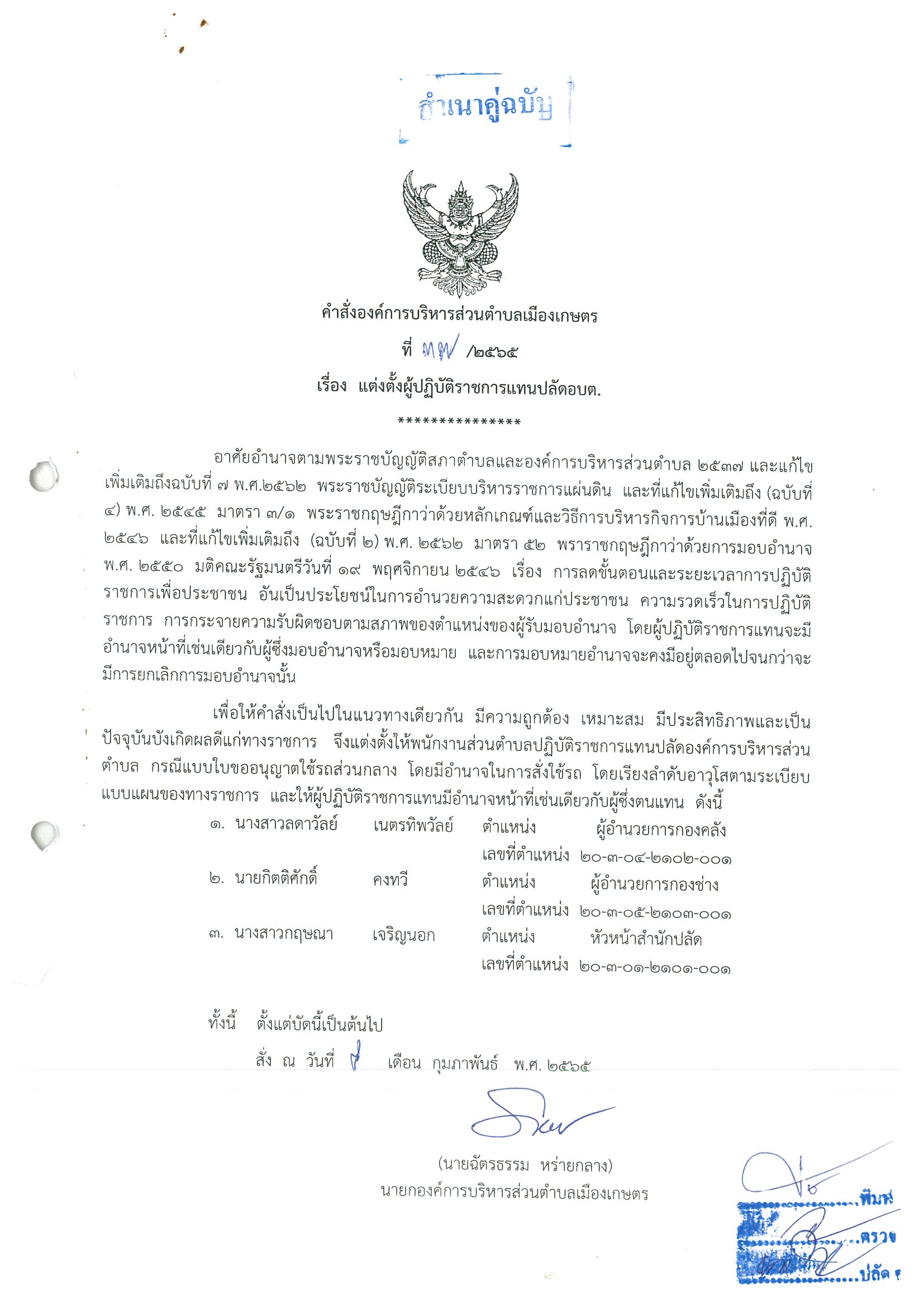 คำสั่งแต่งตั้งผู้ปฏิบัติราชการแทนปลัดอบต.