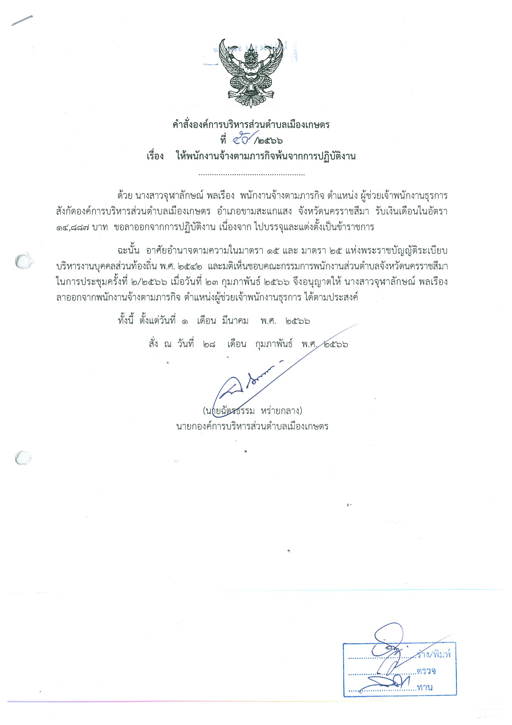 คำสั่งให้พนักงานจ้างตามภารกิจพ้นจากการปฏิบัติงาน