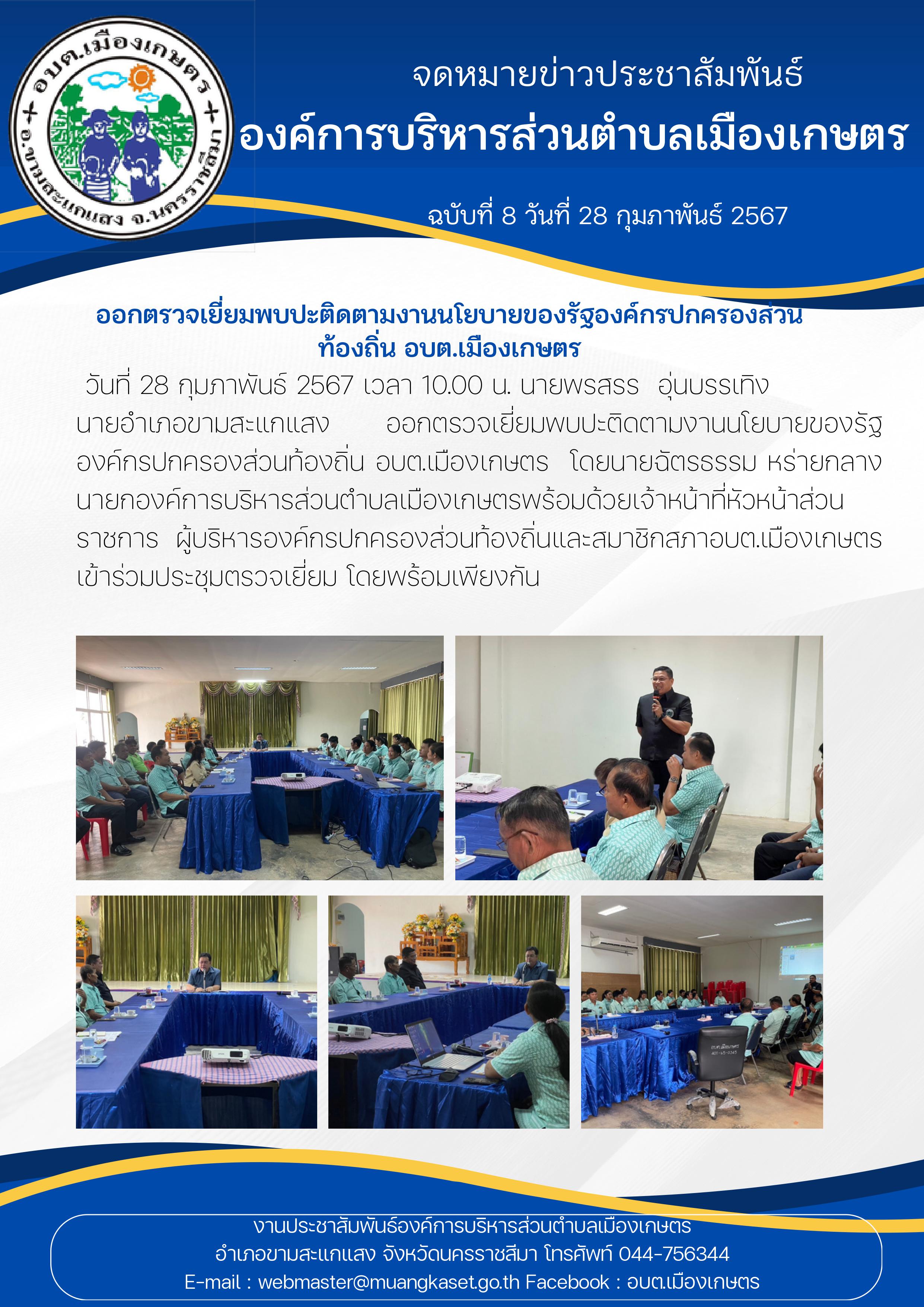 นอภ.ออกตรวจเยี่ยมพบปะติดตามงานนโยบายของรัฐบาลองค์กรปกครองส่วนท้องถิ่น