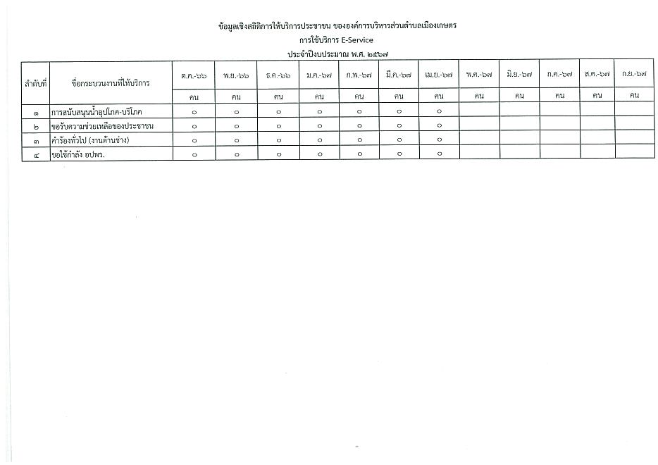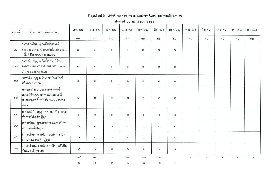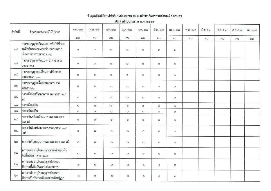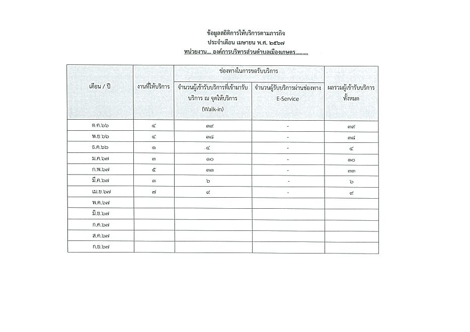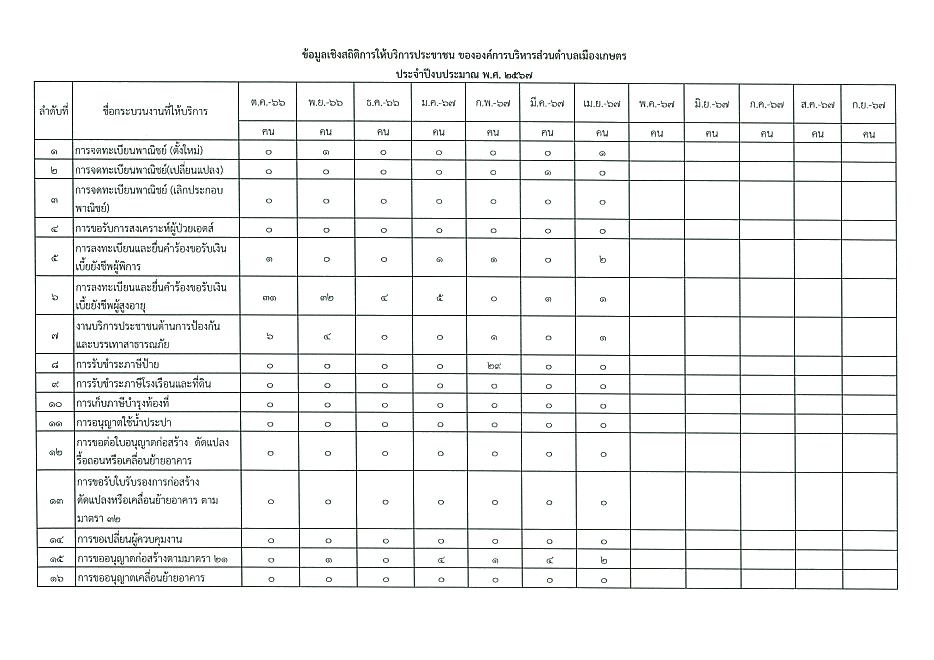 ข้อมูลเชิงสถิติการให้บริการประชาชนของ อบต.เมืองเกษตร ประจำเดือน เมษายน 2567