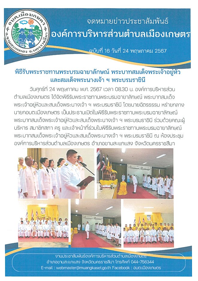 พิธีรับพระราชทานพระบรมฉายาลักษณ์ พระบาทสมเด็จพระเจ้าอยู่หัวและสมเด็จพระนางเจ้า ฯ พระบรมราชินี