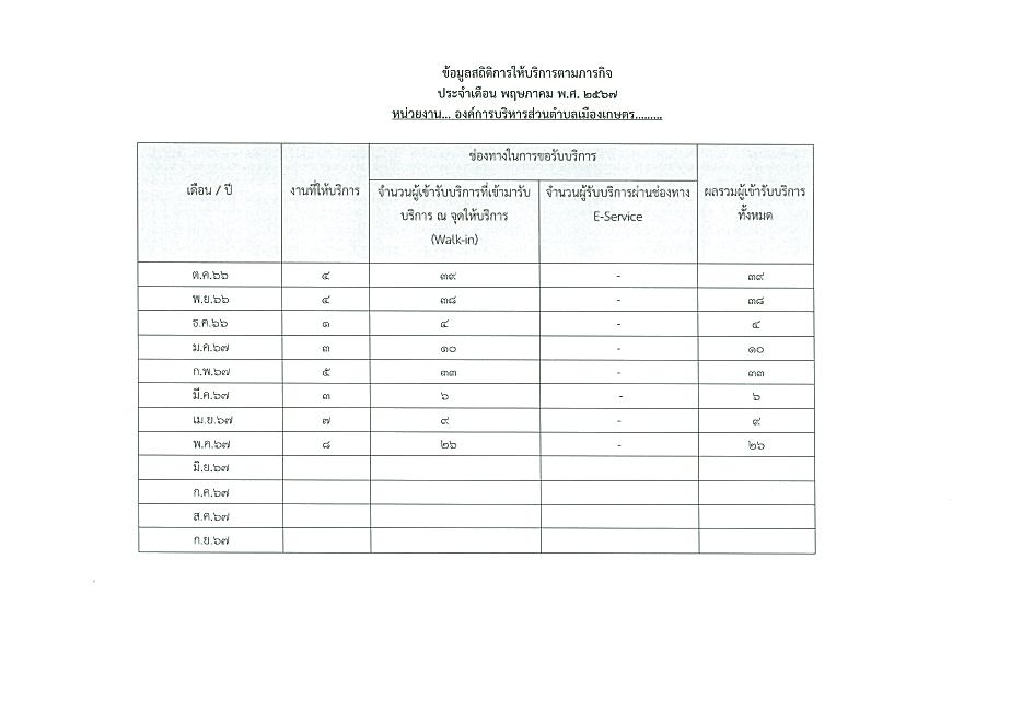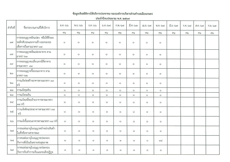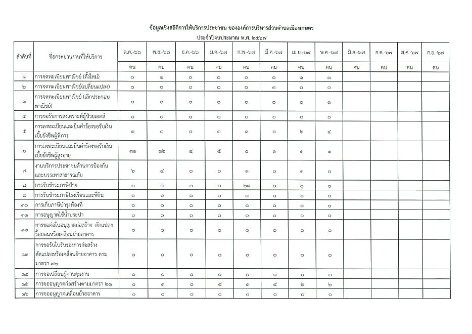 ข้ออมูลเชิงสถิติการให้บริการประชาชนของ อบต.เมืองเกษตร ประจำเดือน พฤษภาคม 2567