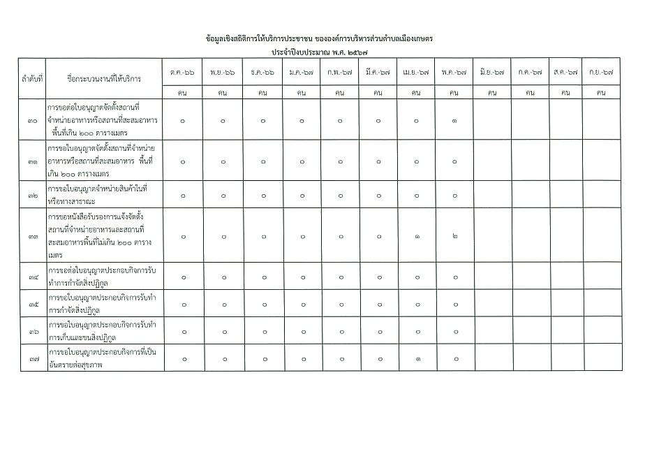 ข้อมูลเชิงสถิติการให้บริการประชาชนของ อบต.เมืองเกษตร ประจำเดือน พฤษภาคม 2567