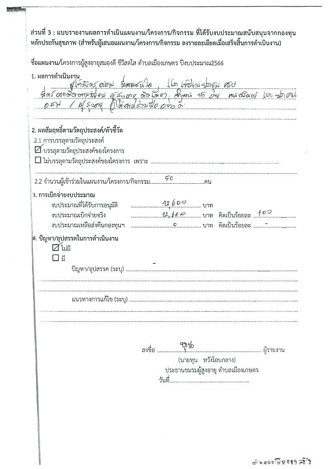 รายงานผลการดำเนินงาน โครงการผู้สูงอายุสมองดี ชีวีสดใส ปี 2566
