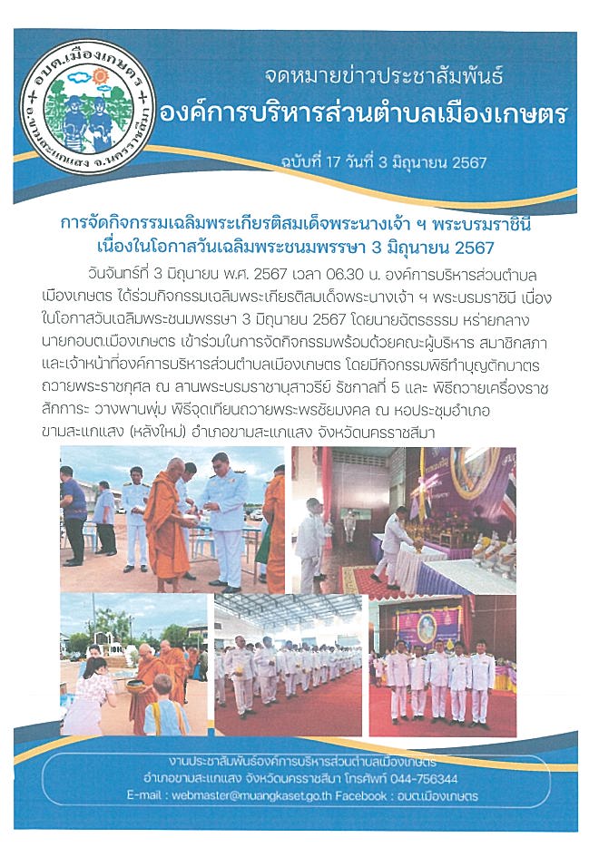 การจัดกิจกรรมเฉลิมพระเกียรติสมเด็จพระนางเจ้า ฯ พระบรมราชินี เนื่องในโอกาสวันเฉลิมพระชนมพรรษา 3 มิถุนายน 2567