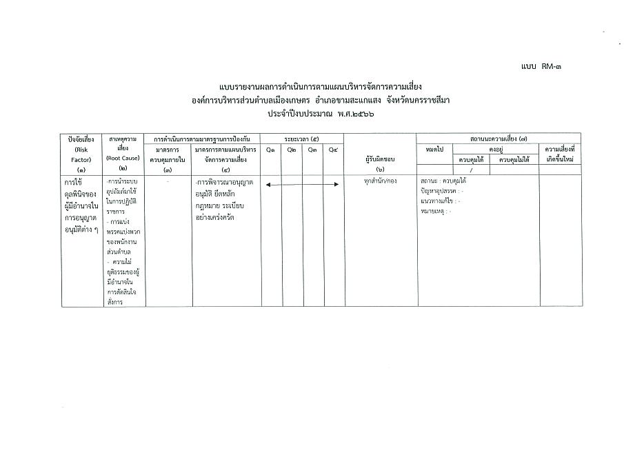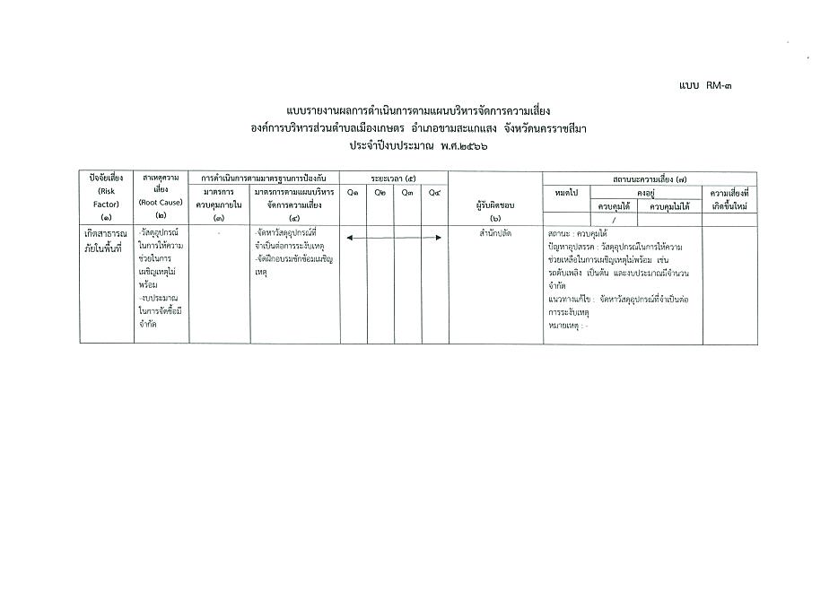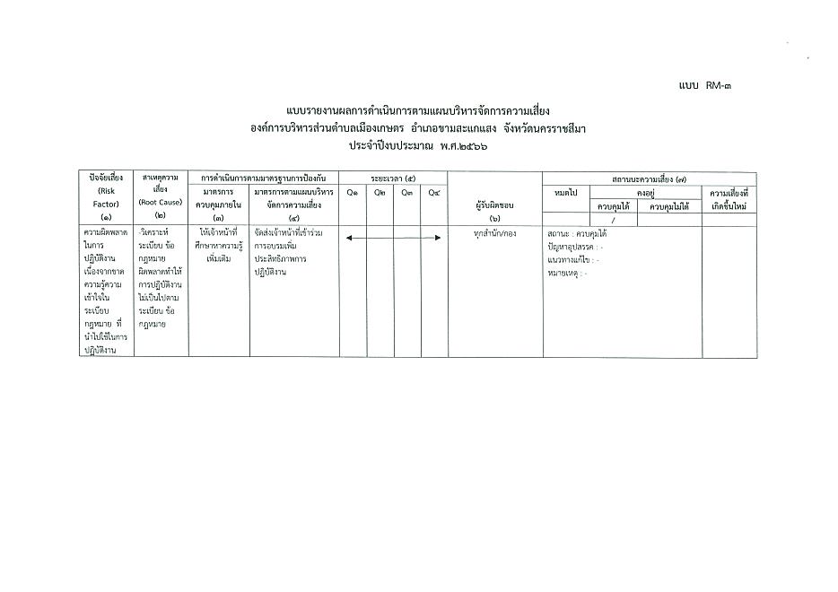 รายงานผลการดำเนินงานตามแผนการบริหารความเสี่ยง ปี 2566