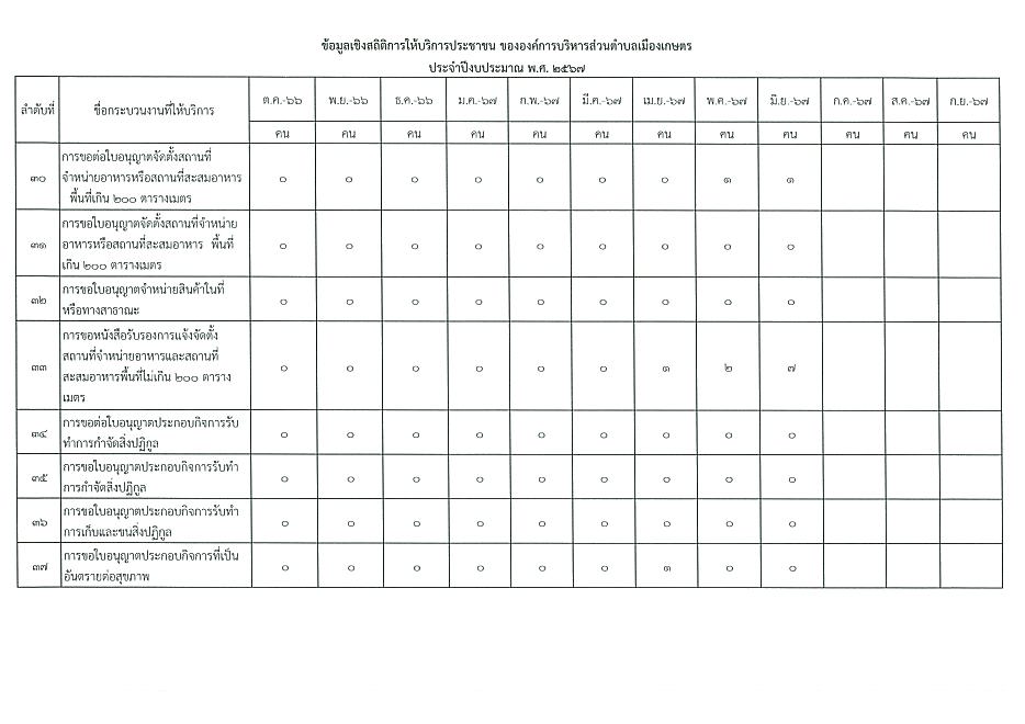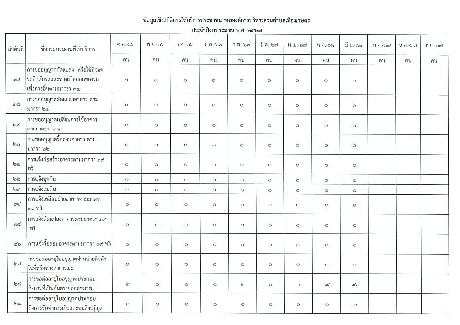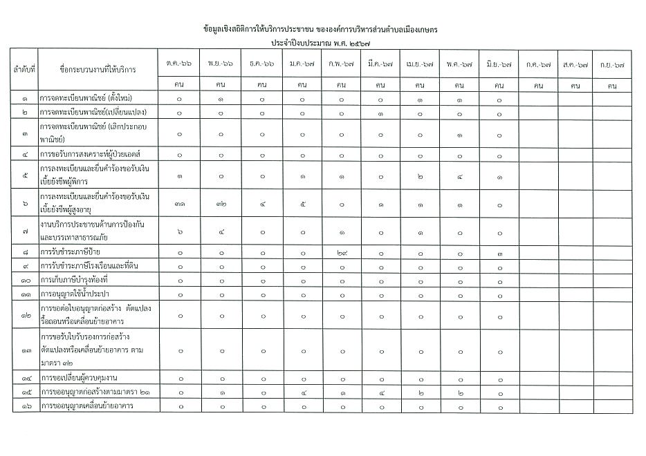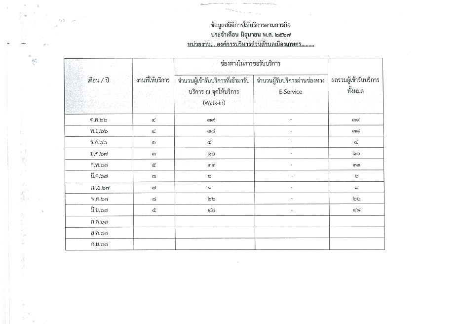 ข้อมูลเชิงสถิติการให้บริการประชาชนของ อบต.เมืองเกษตร ประจำเดือน มิถุนายน 2567