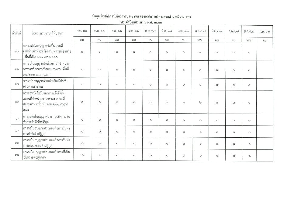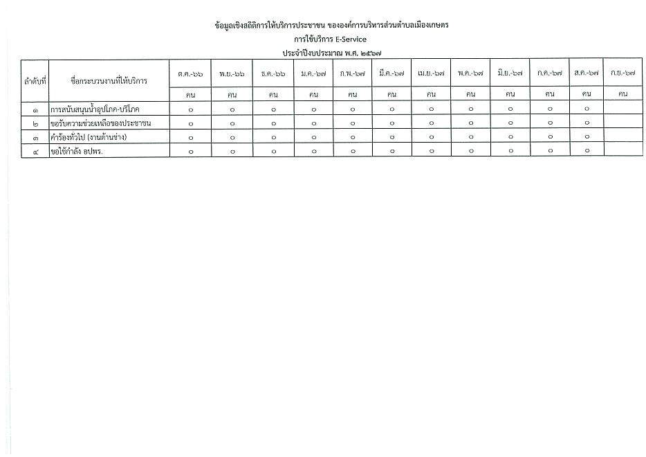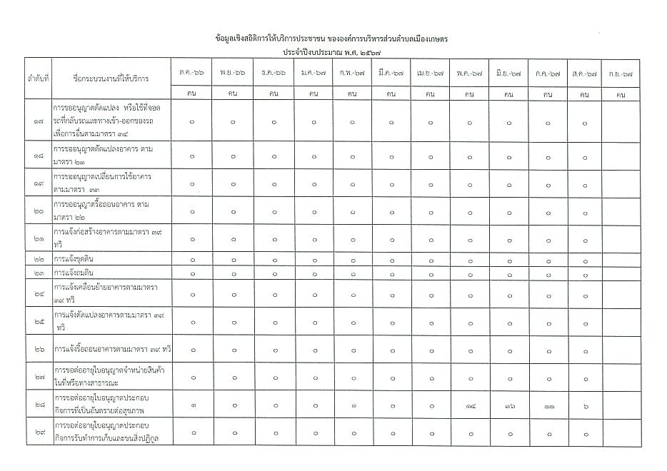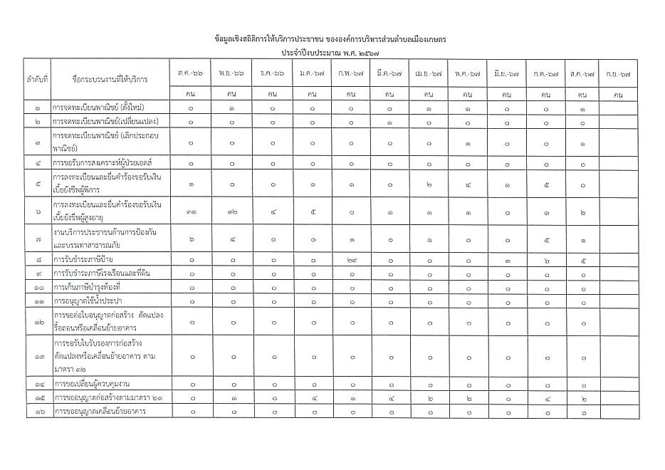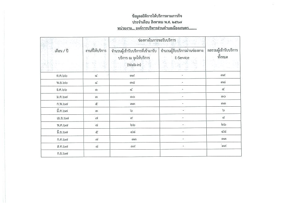 ข้อมูลเชิงสถิติการให้บริการประชาชนของ อบต.เมืองเกษตร ประจำเดือน สิงหาคม 2567