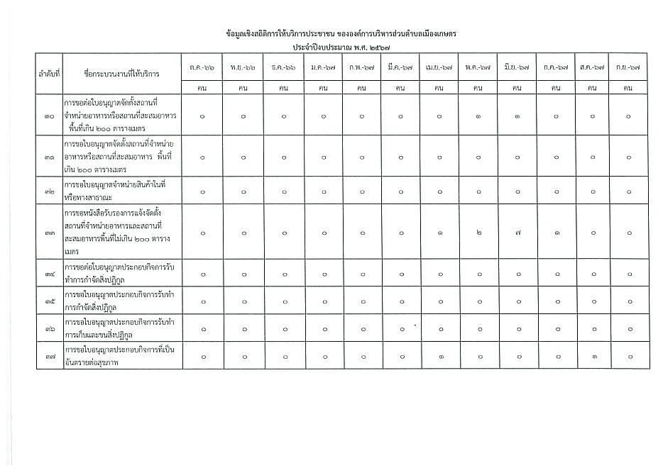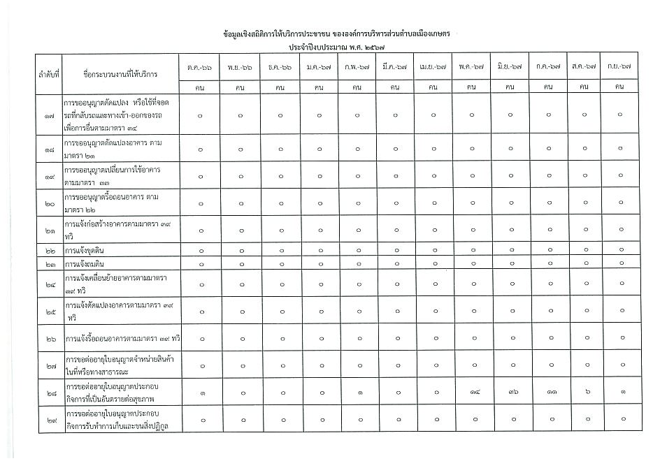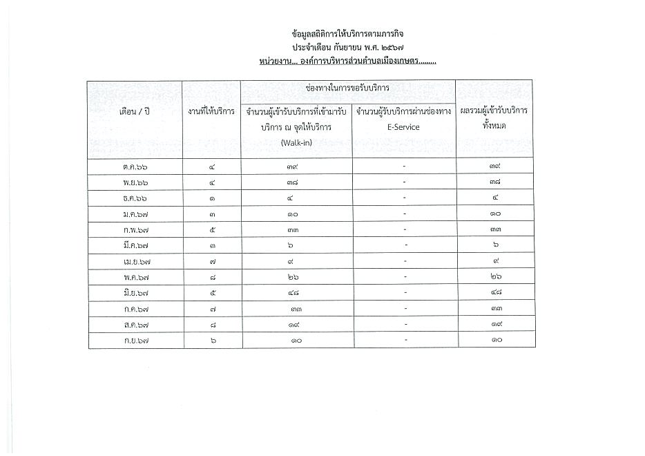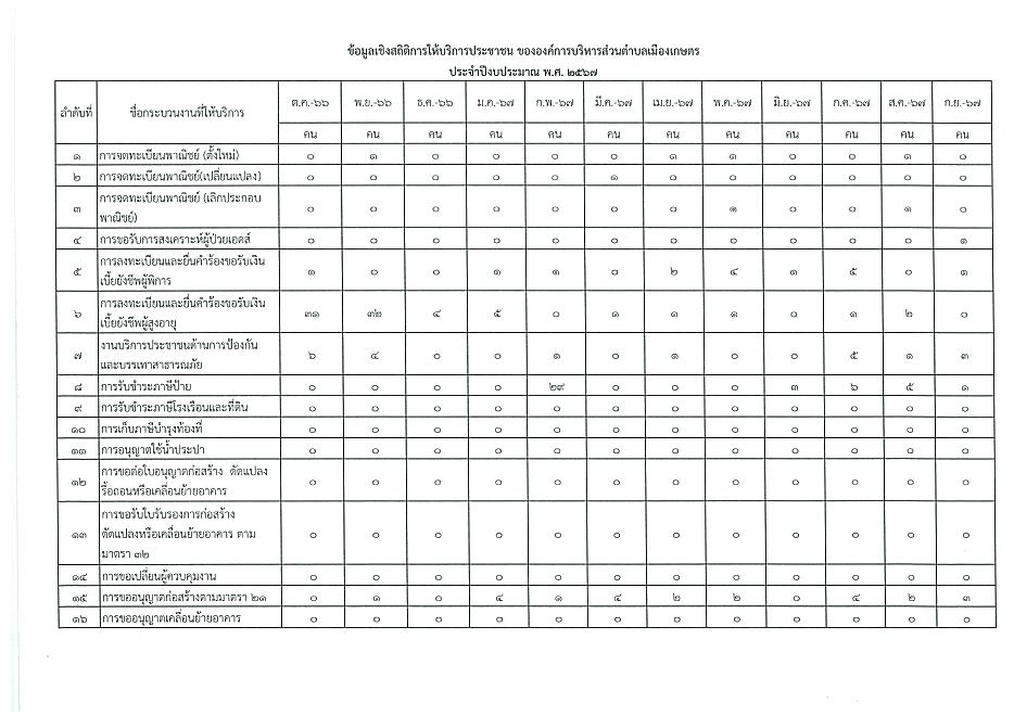 ข้อมูลเชิงสถิติการให้บริการประชาชนของ อบต.เมืองเกษตร ประจำเดือน กันยายน 2567