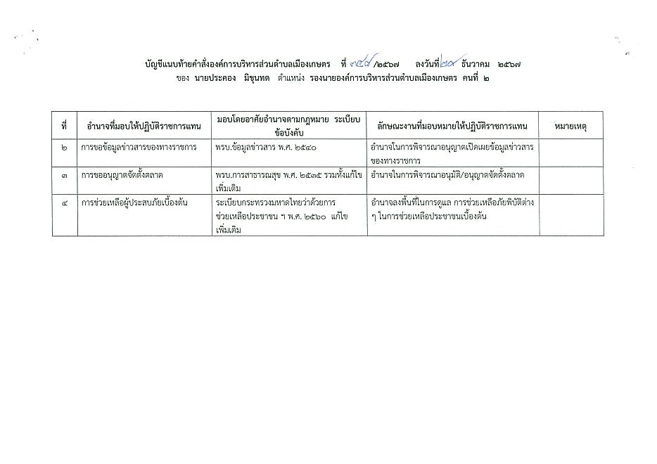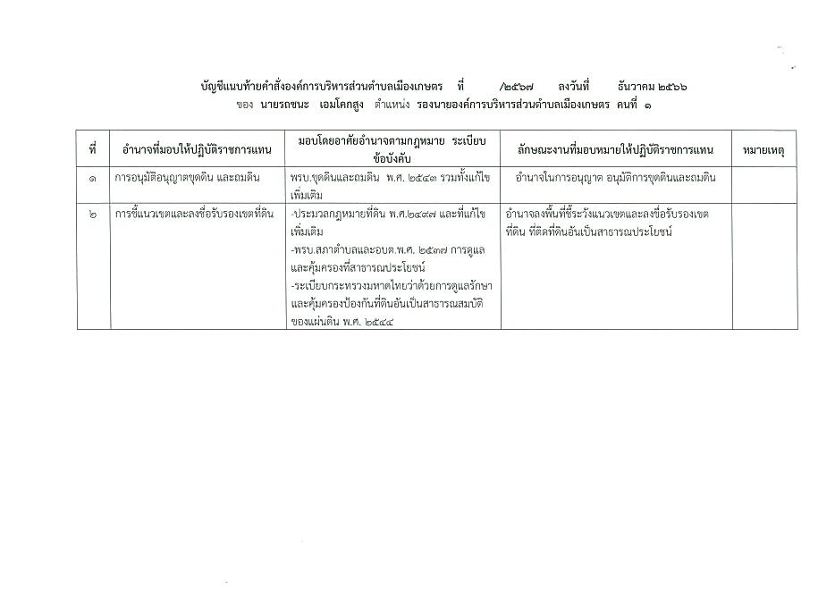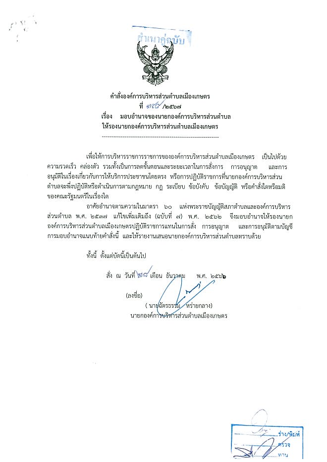 มอบอำนาาจของนายกอบต.ให้รองนายกอบต.เมืองเกษตร