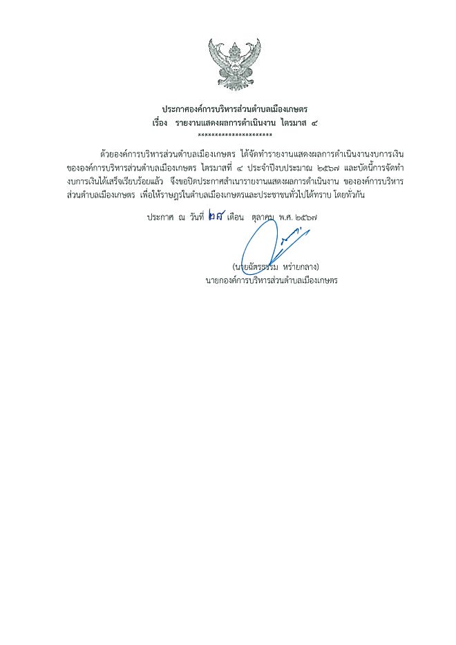 รายงานแสดงผลการดำเนินงาน ไตรมาส 4