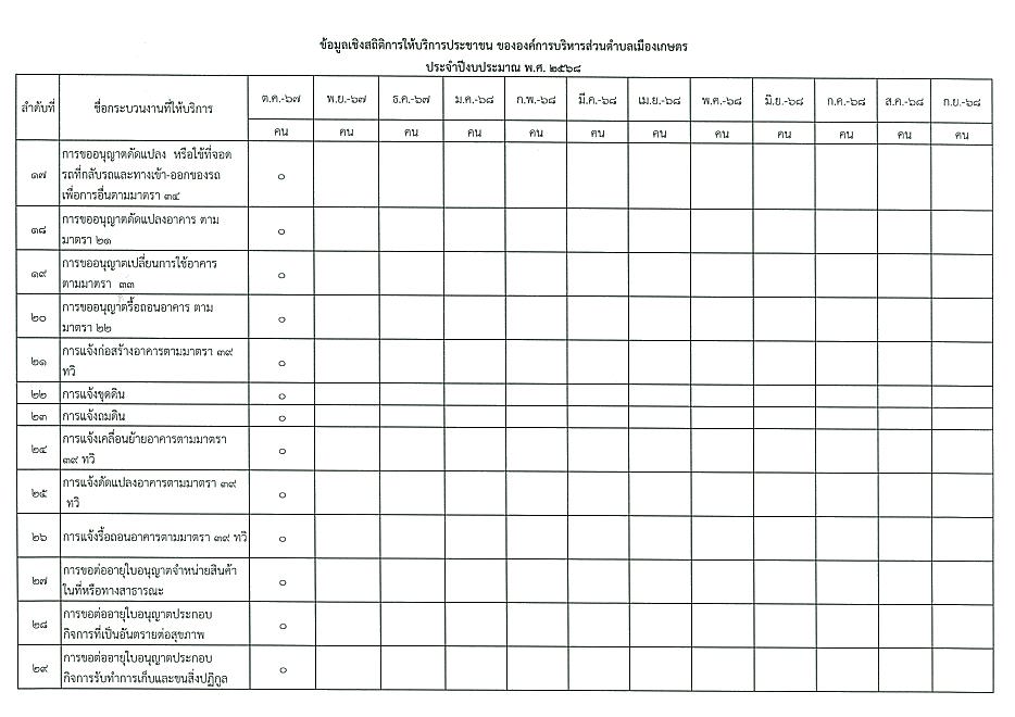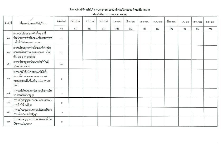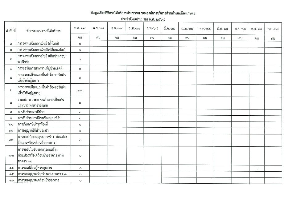 ข้อมูลเชิงสถิติการให้บริการประชาชนของ อบต.เมืองเกษตร ประจำเดือน ตุลาคม 2567