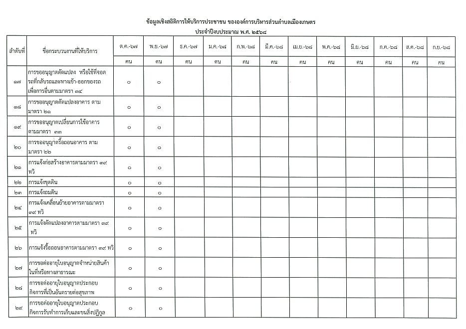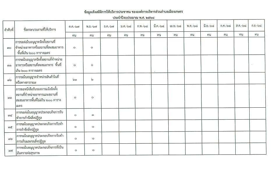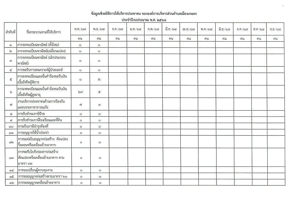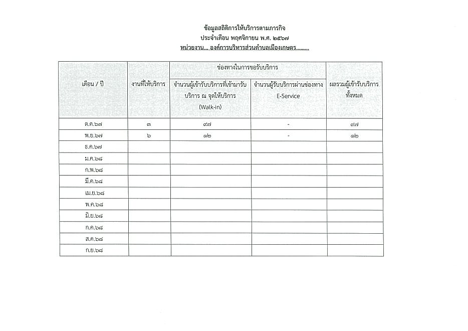 ข้อมูลเชิงสถิติการให้บริการประชาชนของ อบต.เมืองเกษตร ประจำเดือน พฤศจิกายน 2567