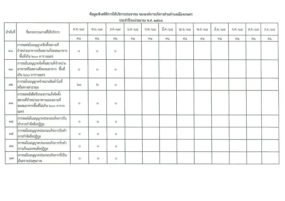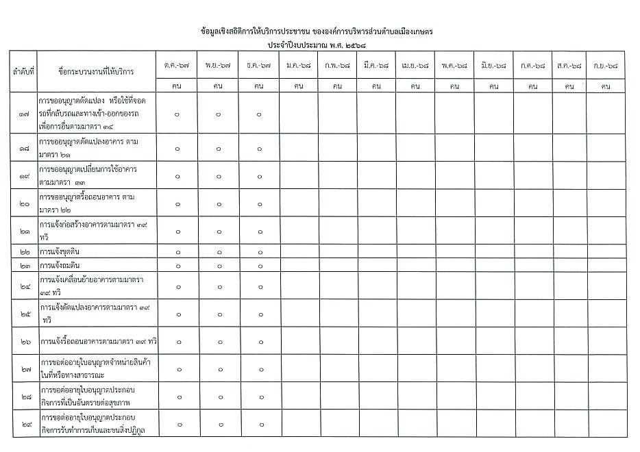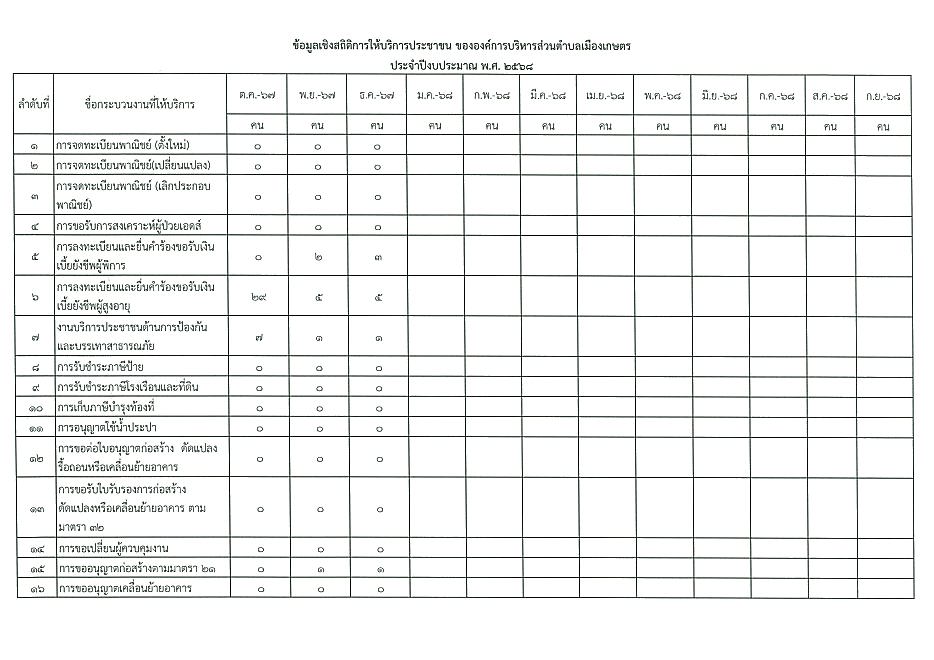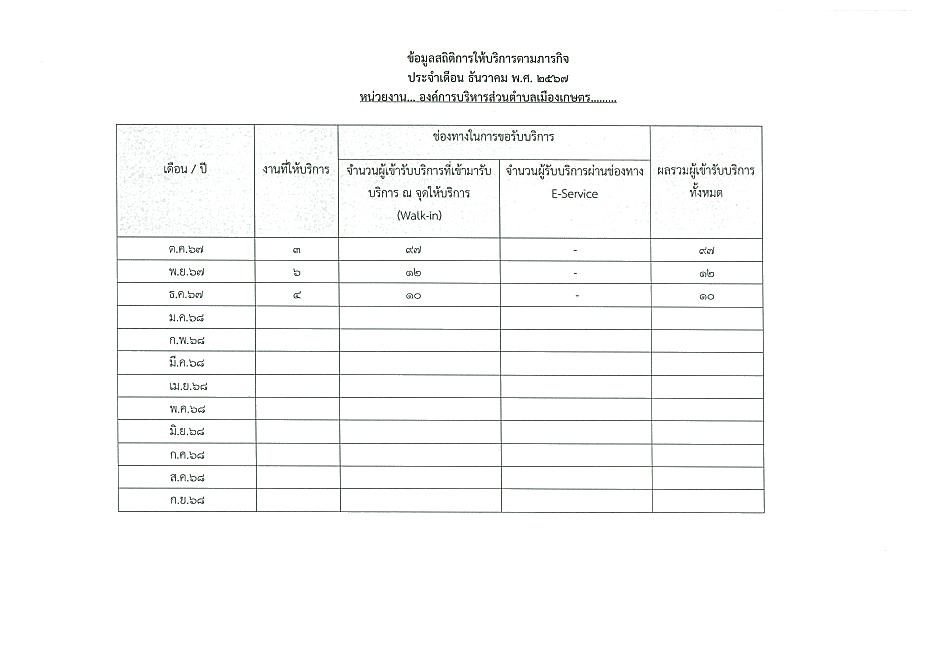 ข้อมูลเชิงสถิติการให้บริการประชาชนของ อบต.เมืองเกษตร ประจำเดือน ธันวาคม 2567