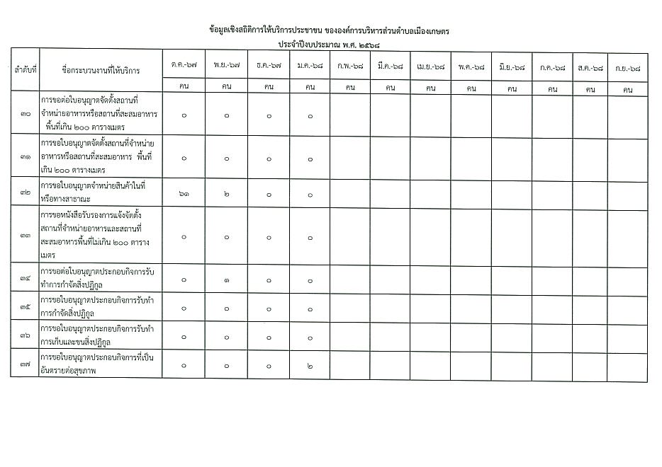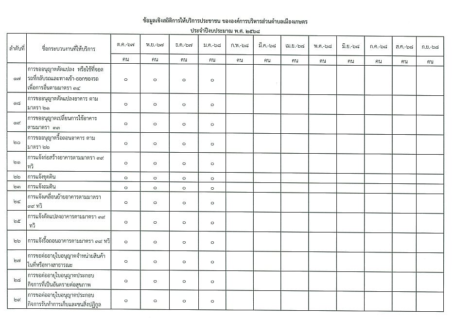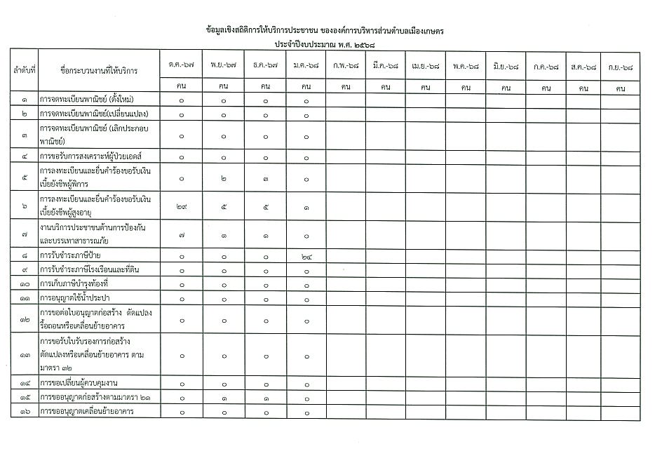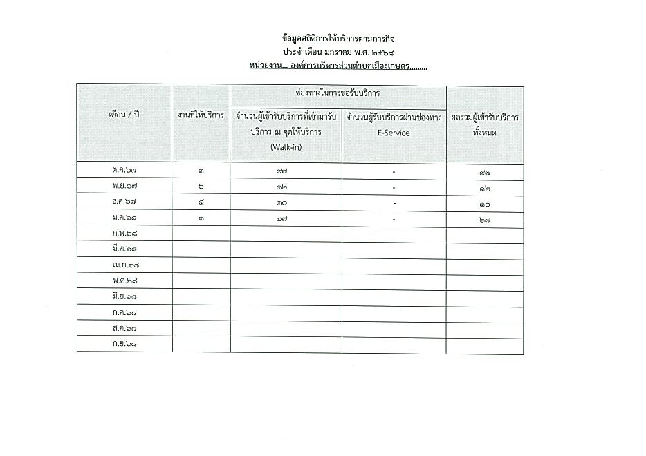 ข้อมูลเชิงสถิติการให้บริการประชาชนของ อบต.เมืองเกษตร ประจำเดือน มกราคม 2568