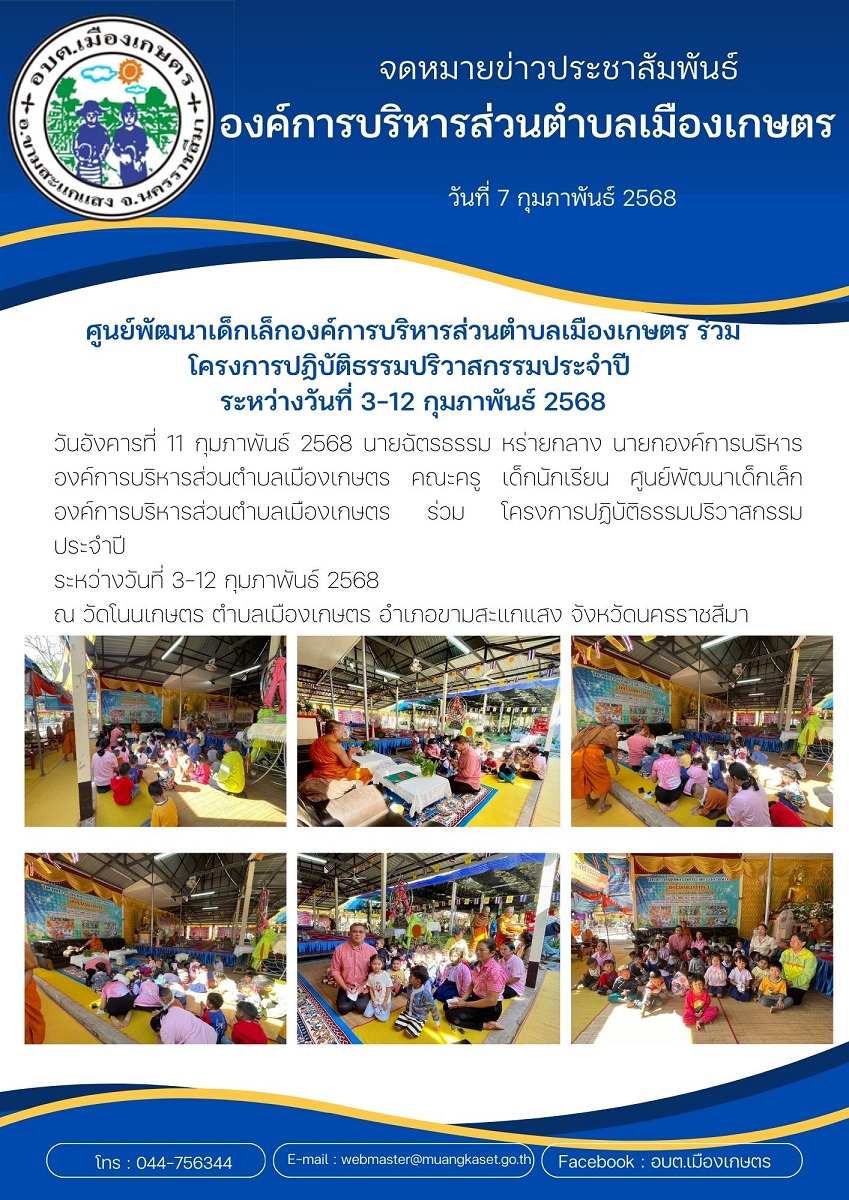 ศูนย์พัฒนาเด็กเล็กองค์การบริหารส่วนตำบลเมืองเกษตร ร่วมโครงการปฏิบัติธรรมปริวาสกรรมประจำปี ระหว่างวันที่ 3-12 กุมภาพันธ์ 2568