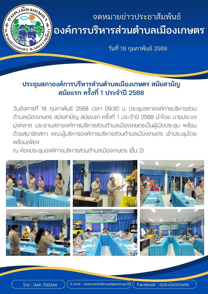 ประชุมสภาองค์การบริหารส่วนตำบลเมืองเกษตร สมัยสามัญ สมัยแรก ครั้งที่ 1 ประจำปี 2568